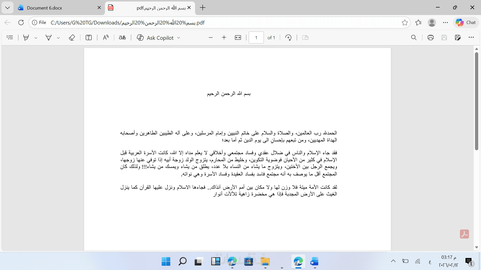 أسلم البحث منسقاً بالكامل على برنامج Microsoft Word مع عناوين واضحة وترتيب فقرات يسهل قراءتها.