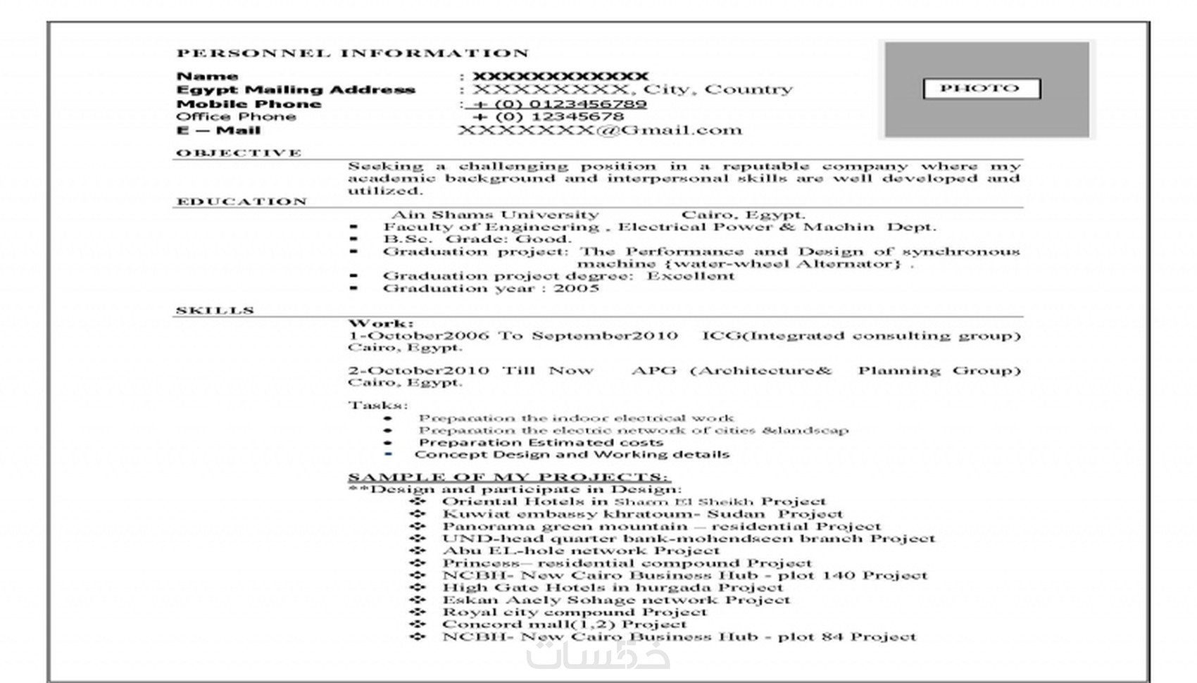 * يمكن اضافة صورة شخصية للسيرة الذاتيه حسب الرغبة