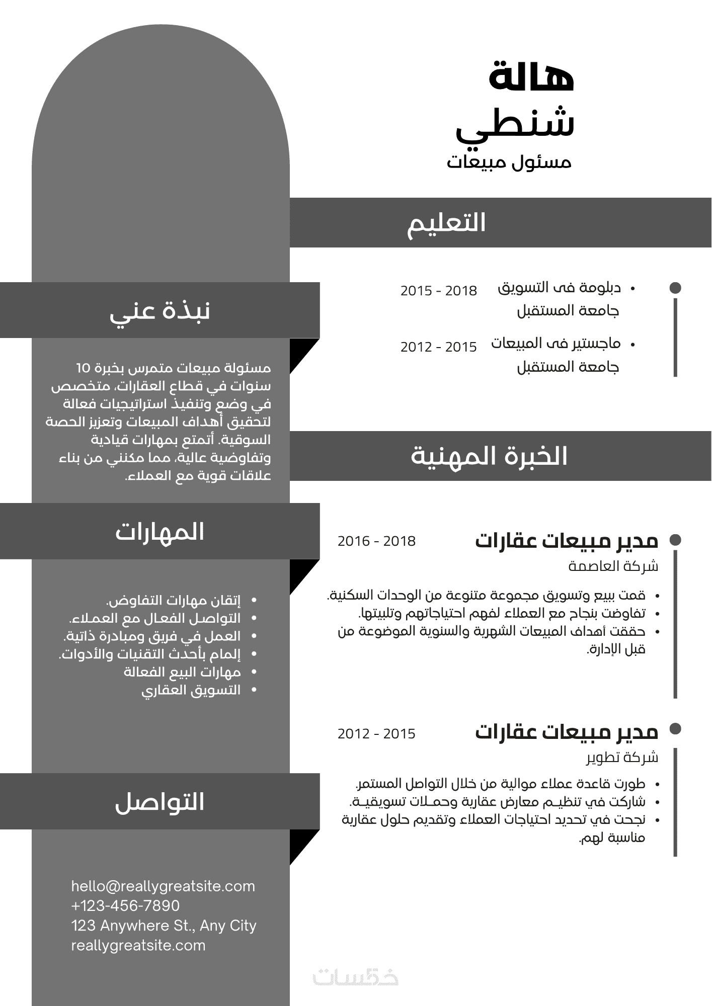 السيرة الذاتية نموذج بسيط (لغة واحدة / صفحة واحدة )
