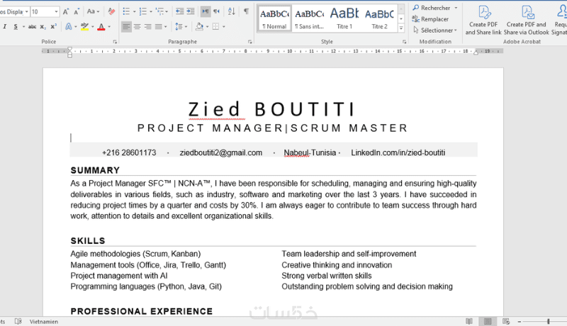 السلام عليكم معكم م.زياد اشتغلت في عدة وظائف وجمعت خبرة طويلة في انشاء وتعديل السير الذاتية باللغة العربية, الفرنسية والانجليزية.
