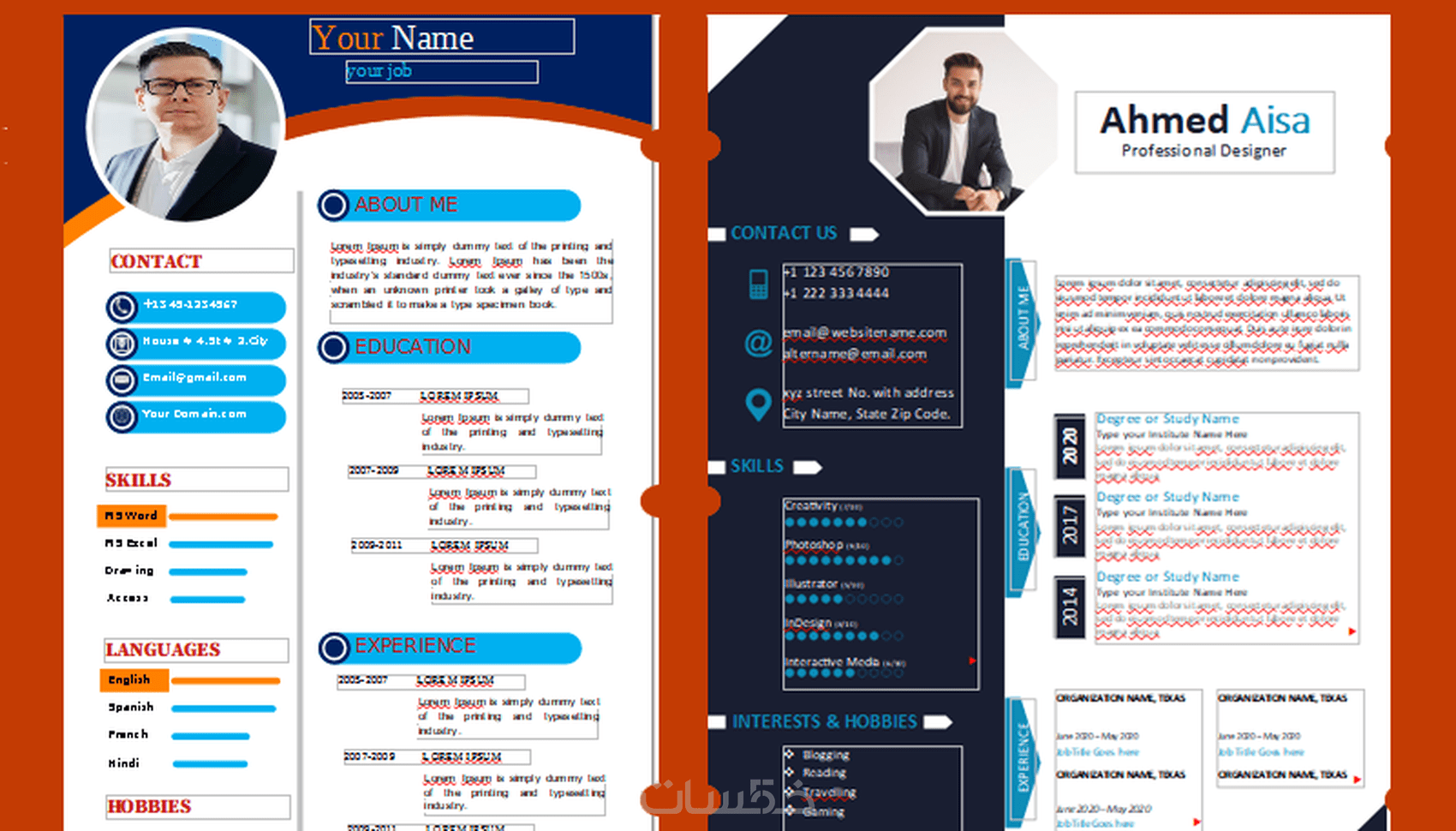 هنا سوف أقدم خدمة تصميم وكتابة السيرة الذاتية (CV) الشاملة والمهنية بشكل احترافي حديث وجديد.