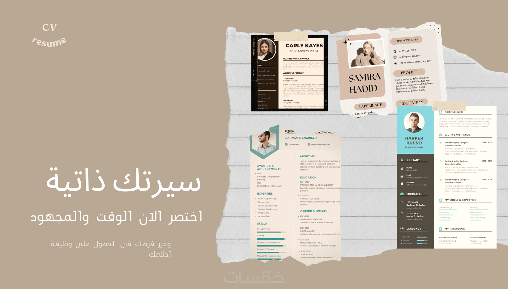 أقوم بكتابة وتصميم سيرتك الداتية المكونة من صفحة واحدة باللغة العربية .