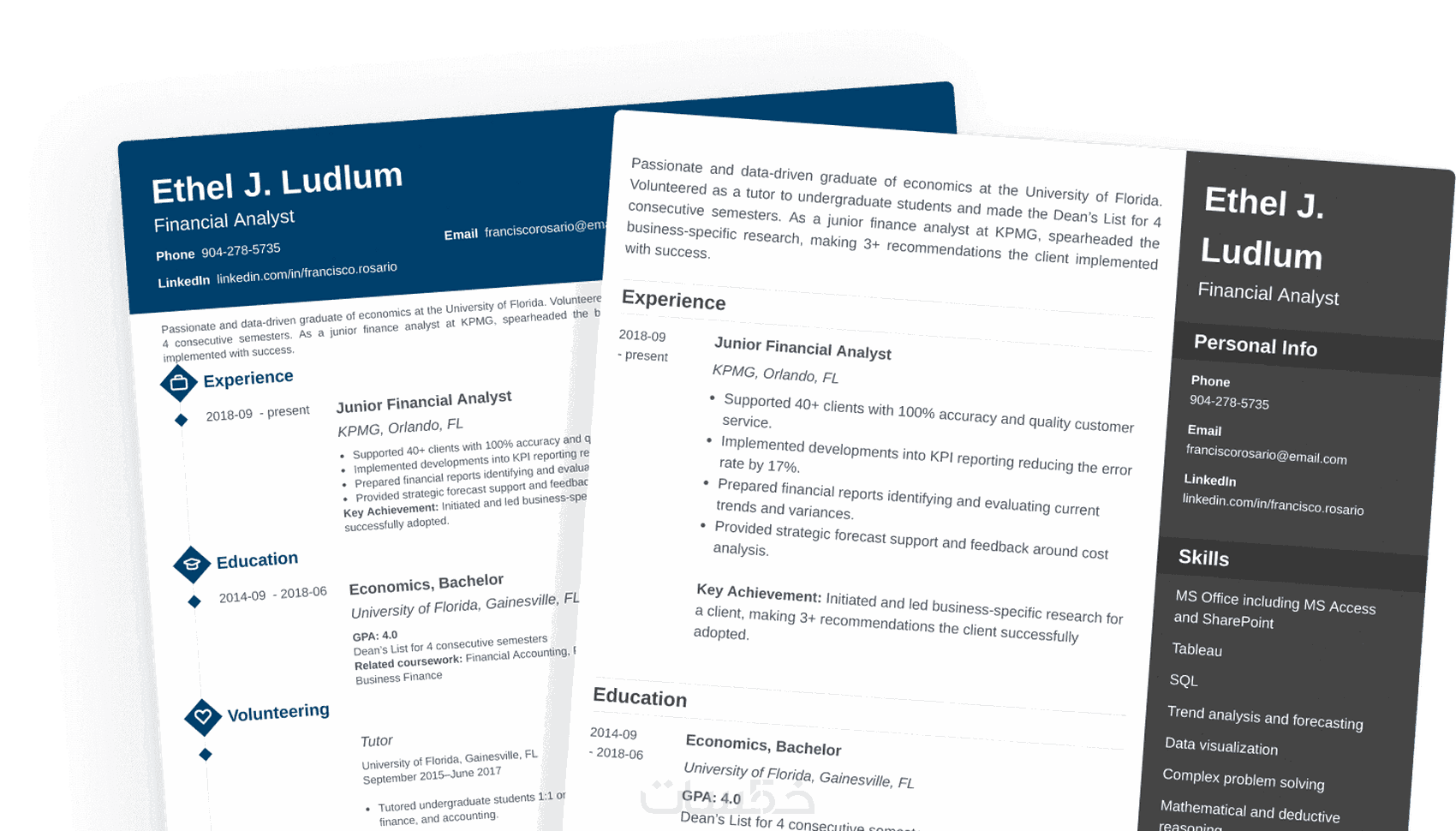 تصمم سيرتك الذاتية باللغتين العربية والإنجليزية مع إتاحة التعديلات عليه