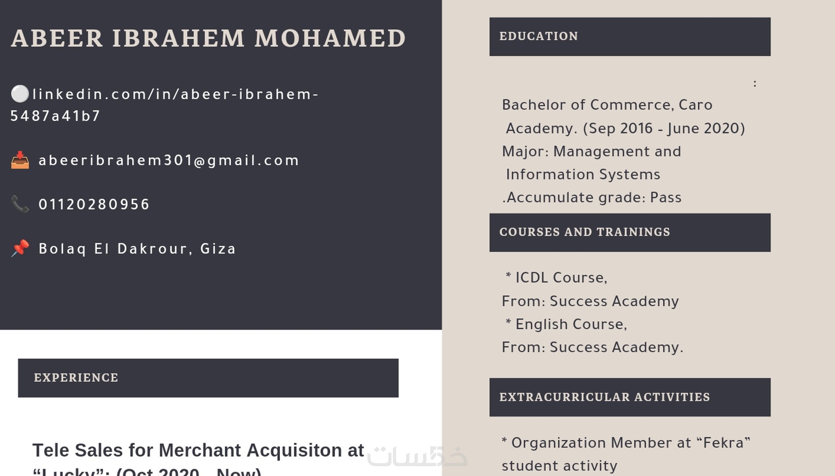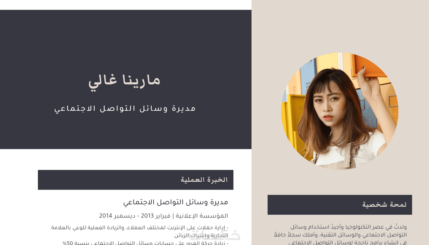 عمل سيرة ذاتيه مره بالعربيه واخرى بالانجليزيه