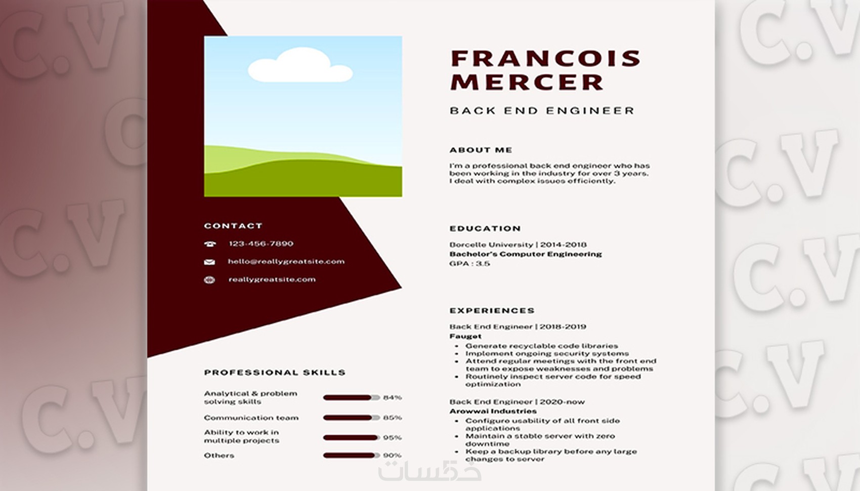 1- سيرة ذات جودة عالية مكونة من صفحة واحدة