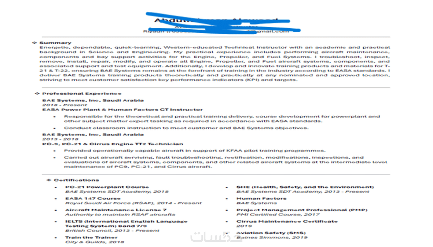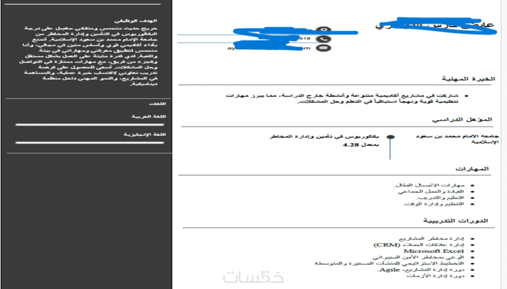 • سيرتك الذاتية الحالية شاملة كل المعلومات المطلوب اضافتها ورد أو تكست