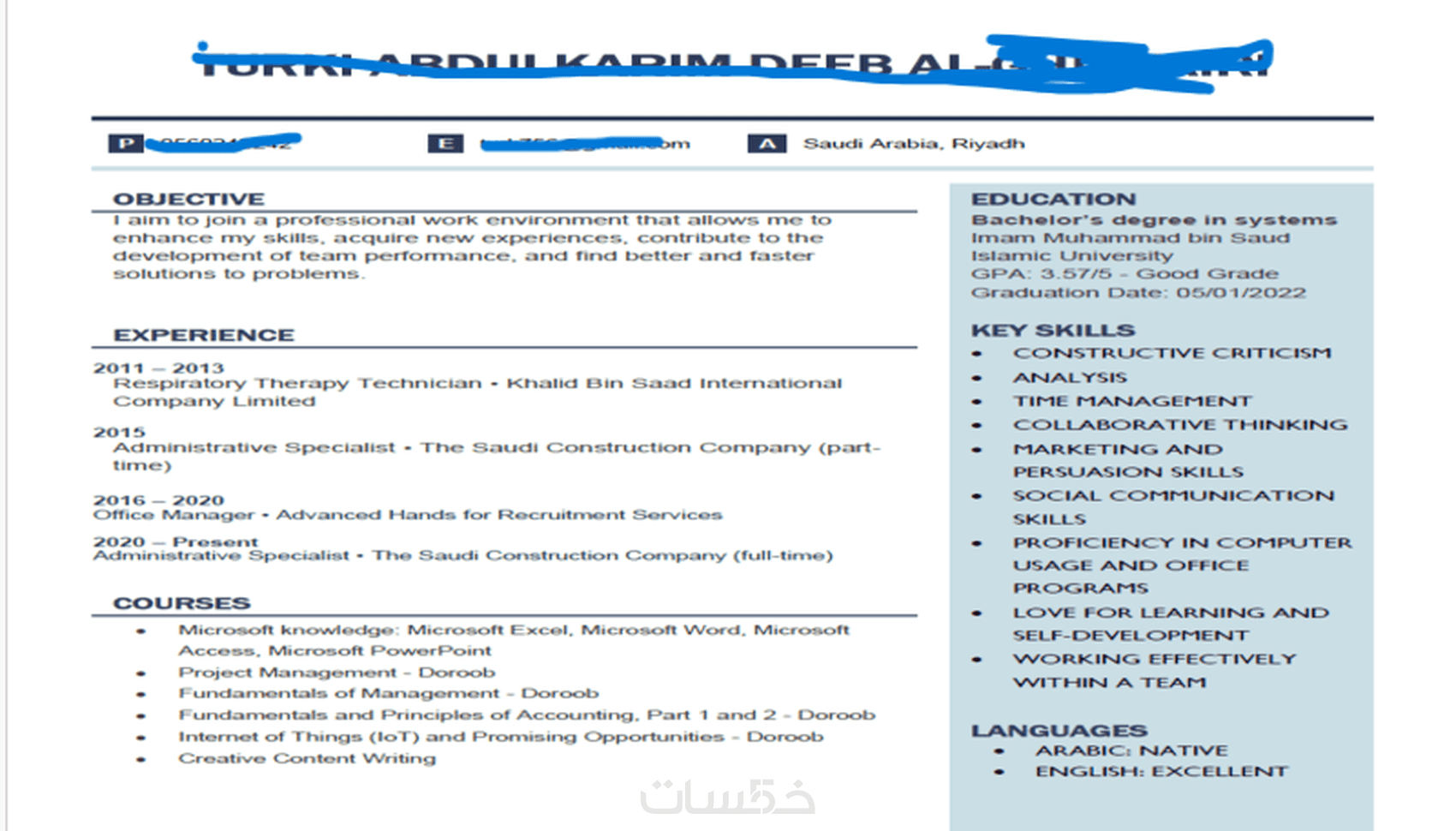 لا تتردد لطلب عمل سيرة ذاتية احترافية لك لأنها تساعدك على االحصول على الوظيفة بسهولة وايضاً طبقاً لمعايير ال ATS.