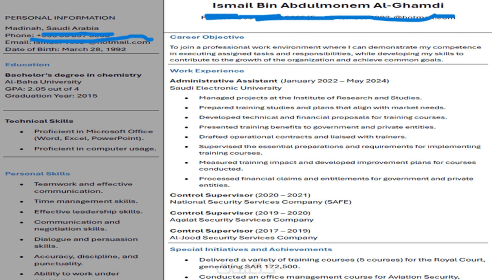 أنا لدي مهارة عمل سيرة ذاتية احترافية من خلال برامج الفوتوشوب والاوفيس ، سوف أعرض لك كل النماذج وأنت أختار النموذج الذي يناسبك أضمن تصميمها لك فى اسرع وقت
