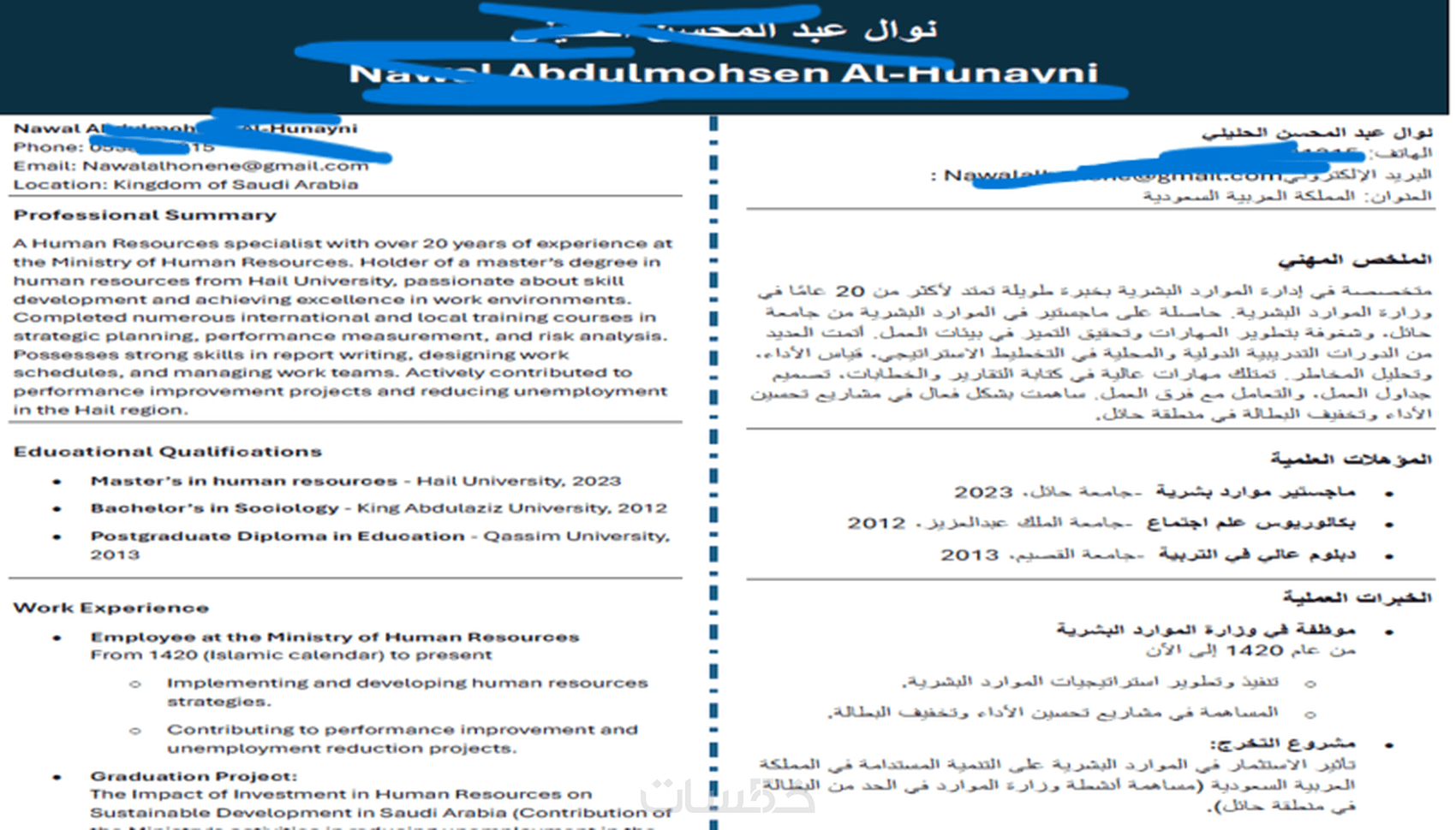 سيرة ذاتية مدمجة (عربي+انجليزي)