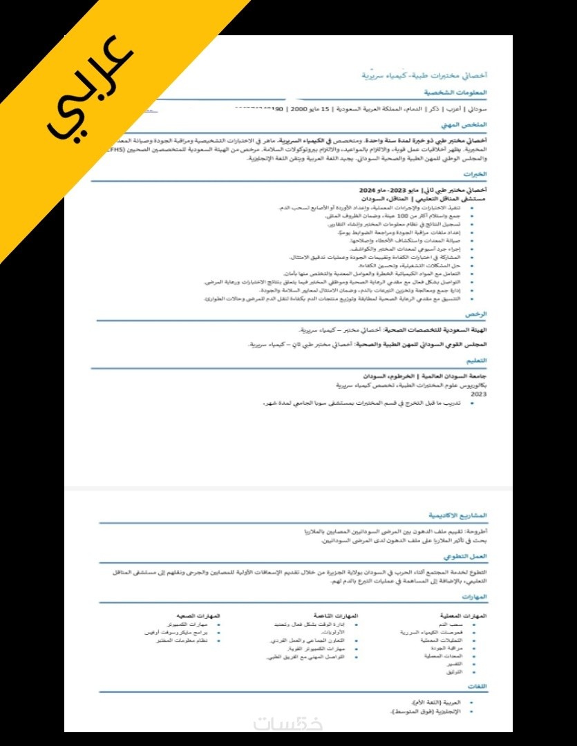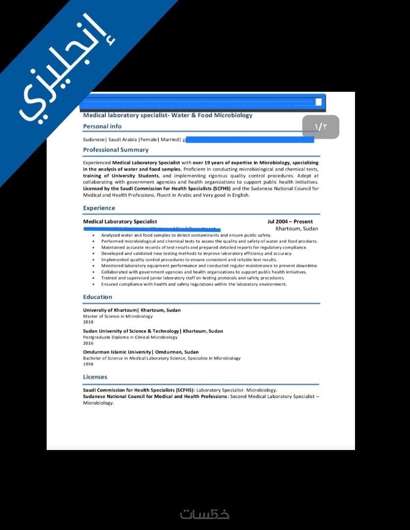 احصل معي على سيرة ذاتية واحدة متوافقة مع نظام التتبع ATS احترافية باللغة الإنجليزية أو العربية