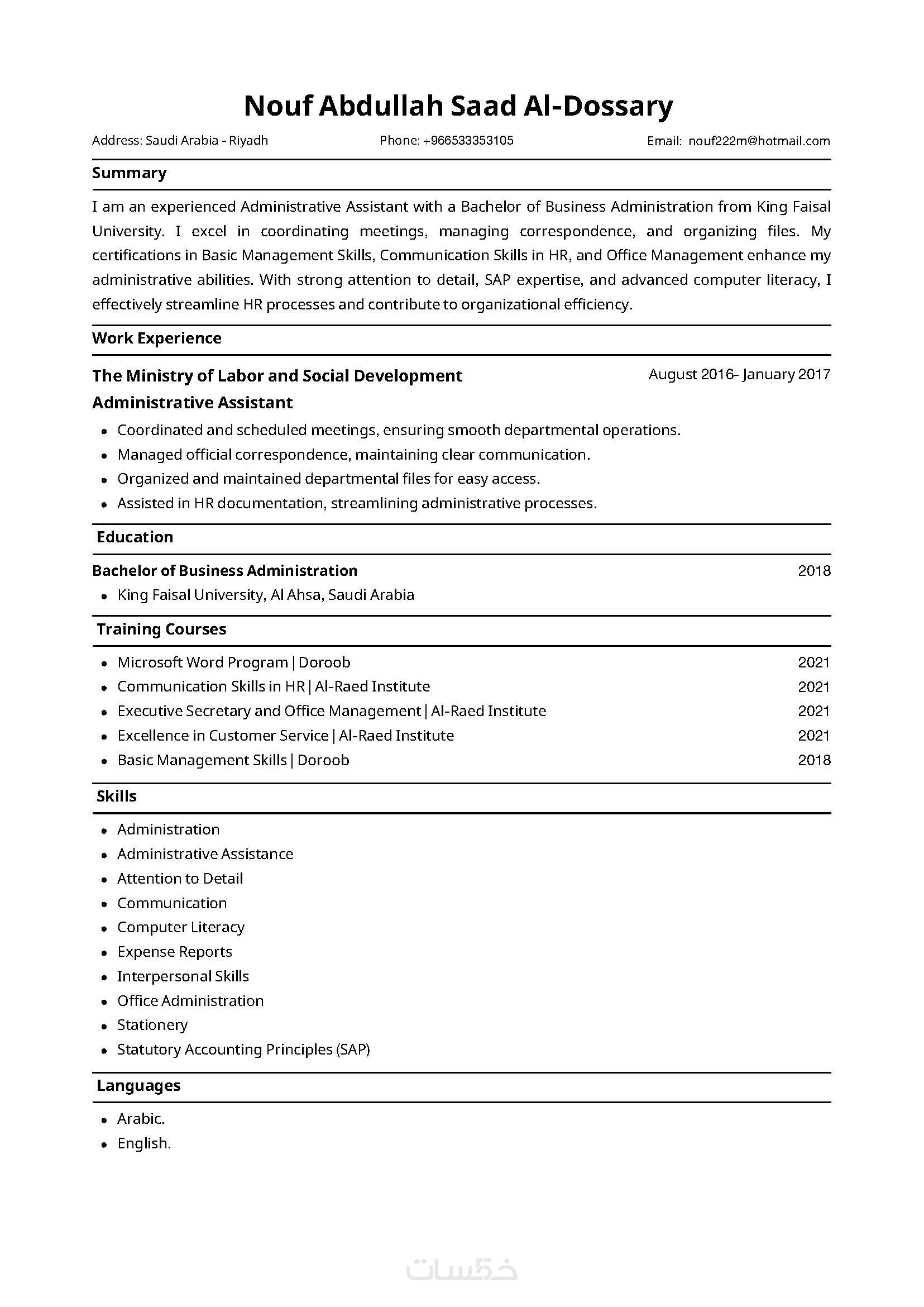 - سيرة ذاتية و بدون أي أخطاء أو تكرار.
