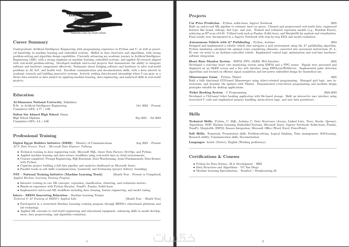 ● تصميم سيرة ذاتية جذابة وحديثة.