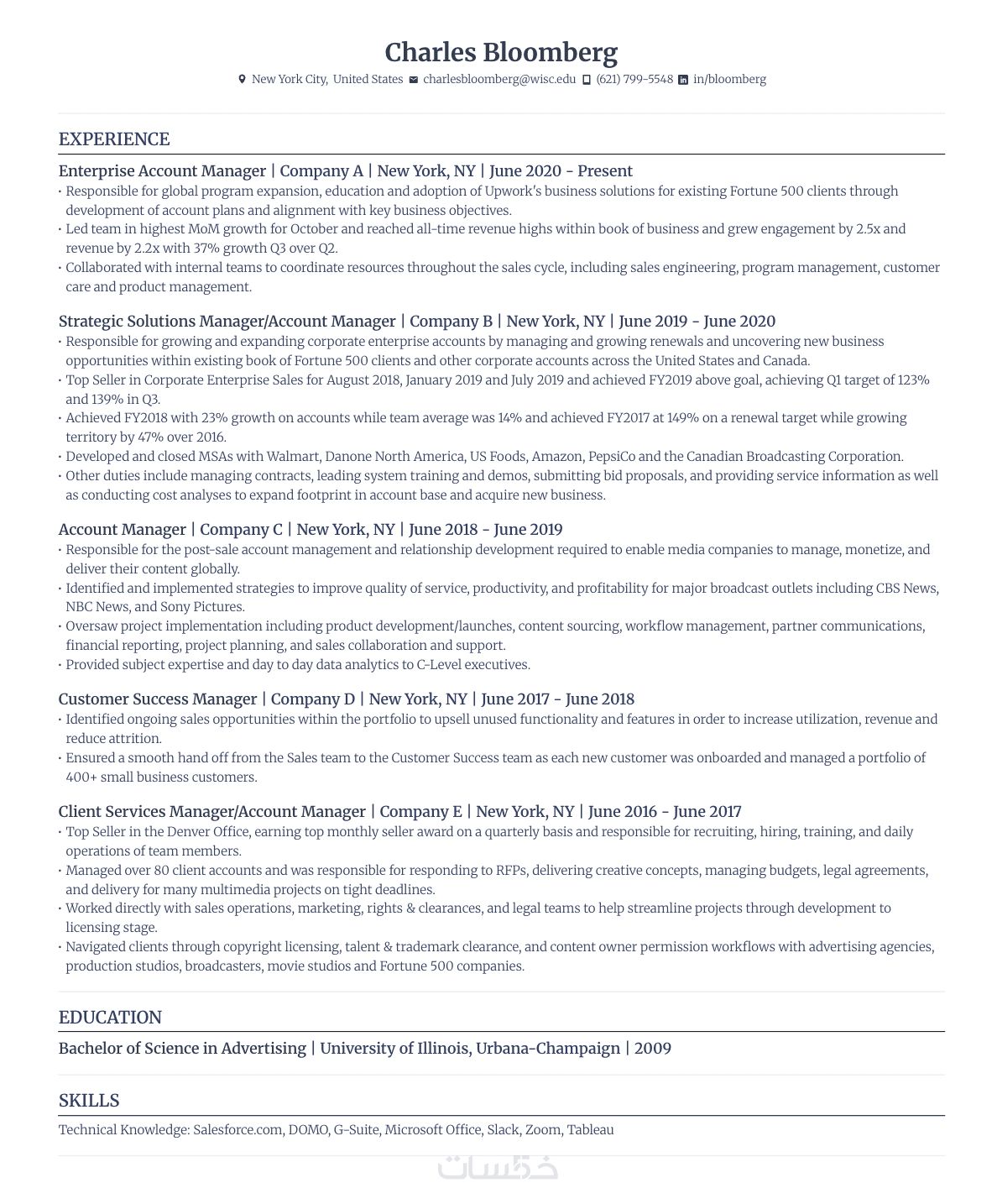 ● الخبرات العملية (المسمى الوظيفي، الشركات، مدة العمل).