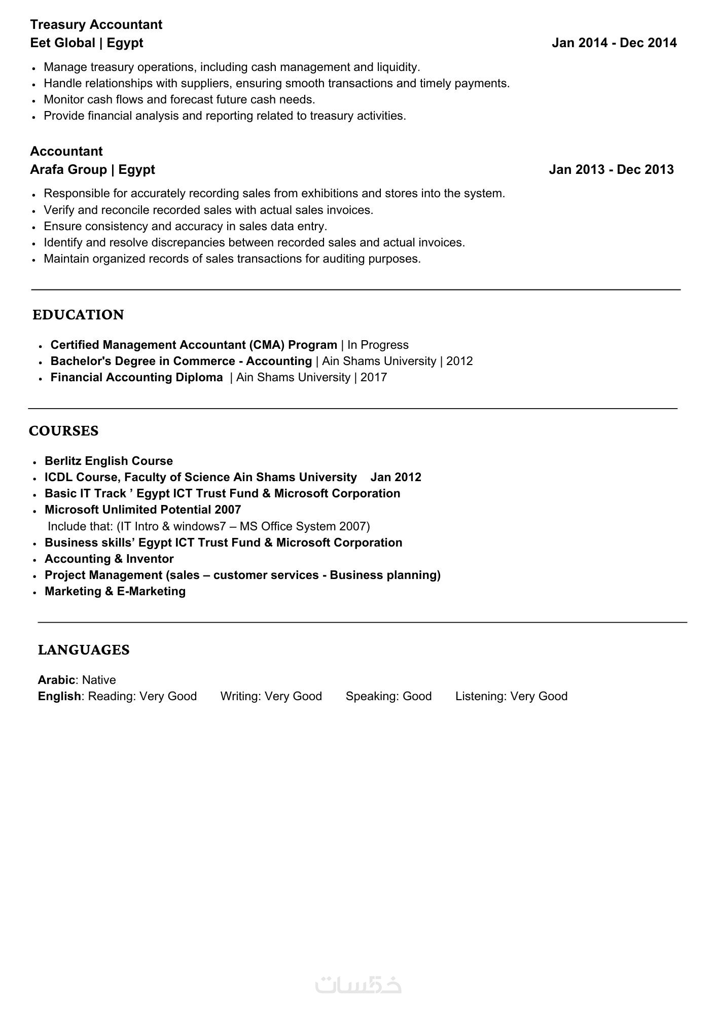 لغات متعددة: إمكانية كتابة السيرة الذاتية باللغة العربية أو الإنجليزية.