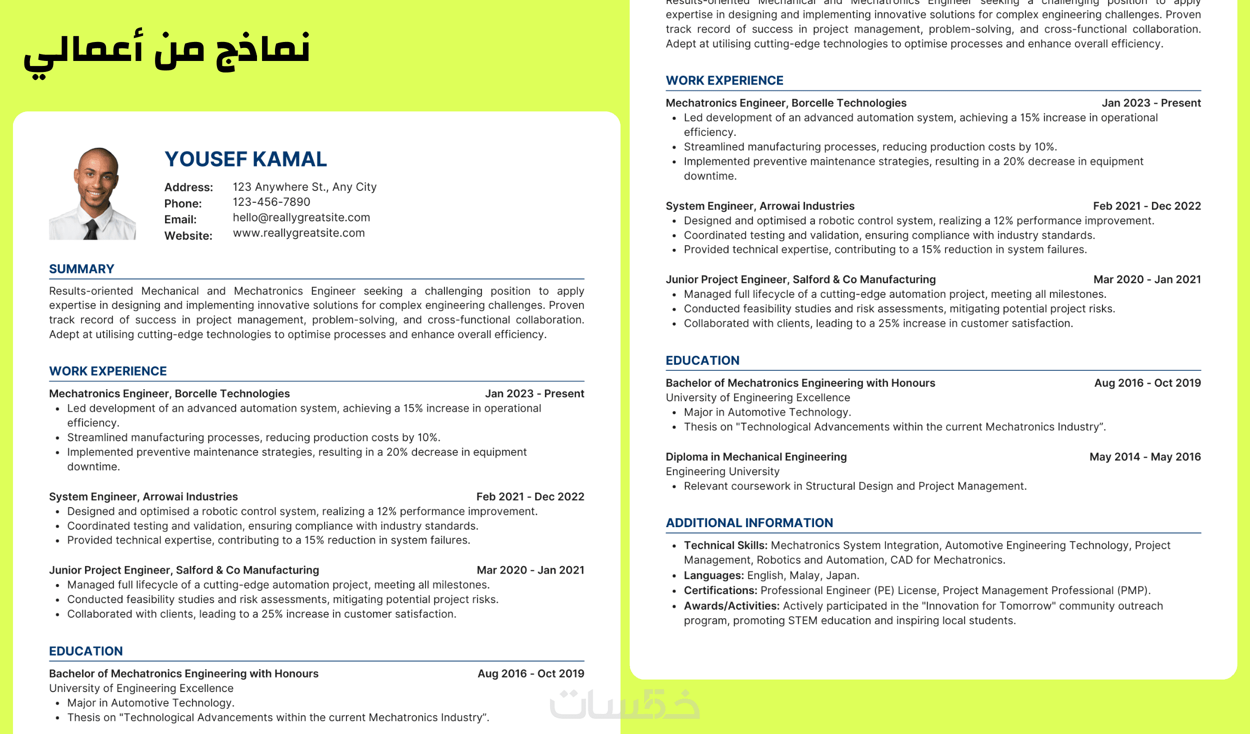 * تصميم يناسب أنظمة التوظيف الحديثة (ATS).