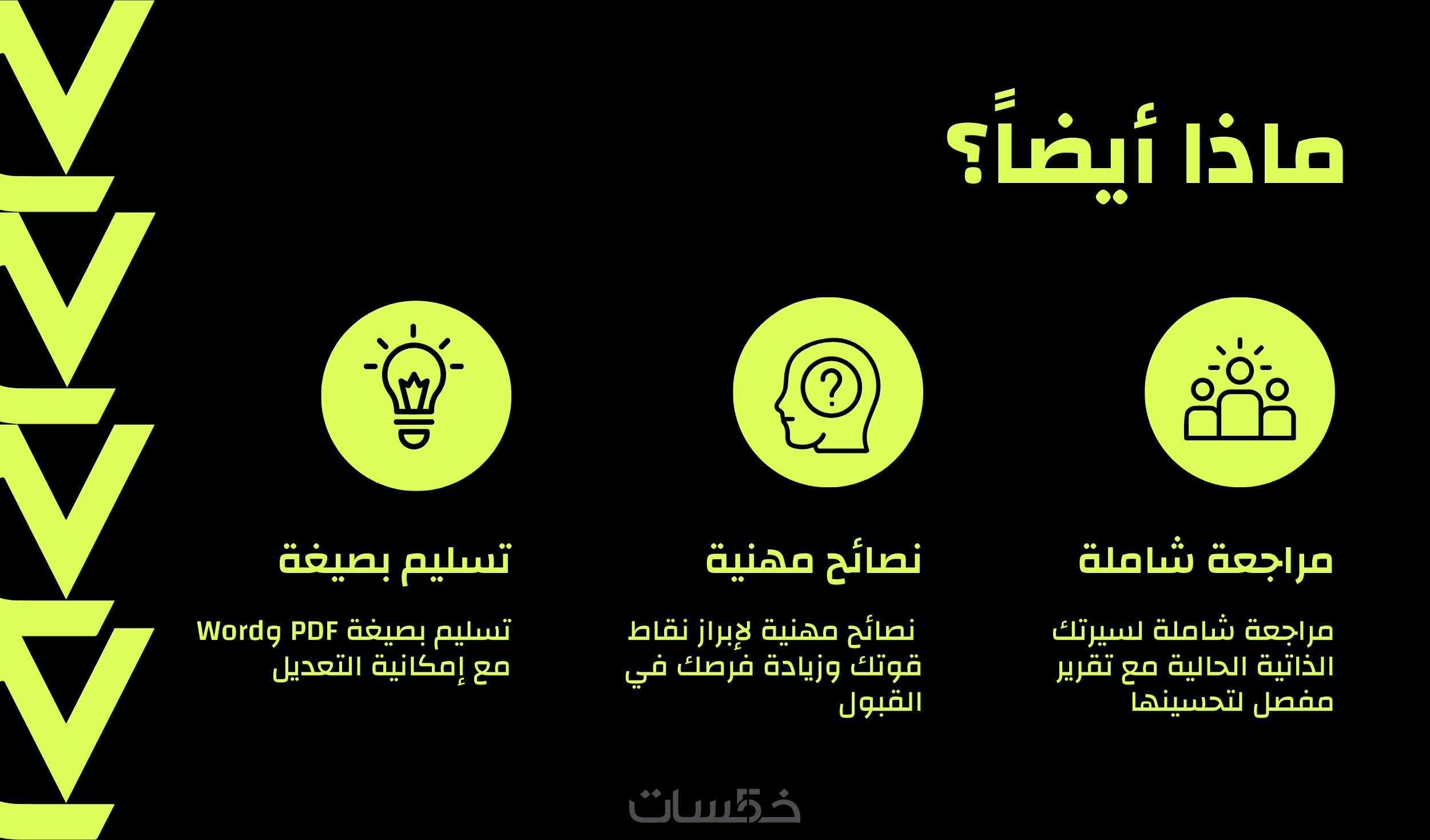 * مراجعة شاملة لسيرتك الذاتية الحالية مع تقرير مفصل لتحسينها.