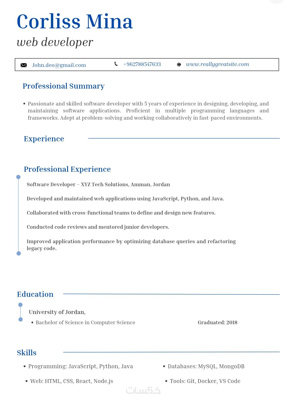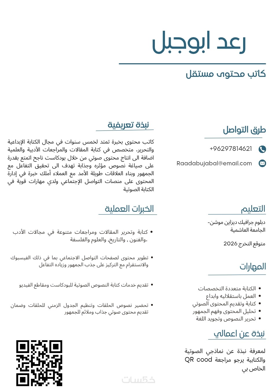 أقدّم لك خدمة كتابة سيرة ذاتية احترافية، مخصصة لتناسب الوظيفة التي تستهدفها، ومتوافقة مع نظام ATS لضمان ظهورك في نتائج التوظيف.