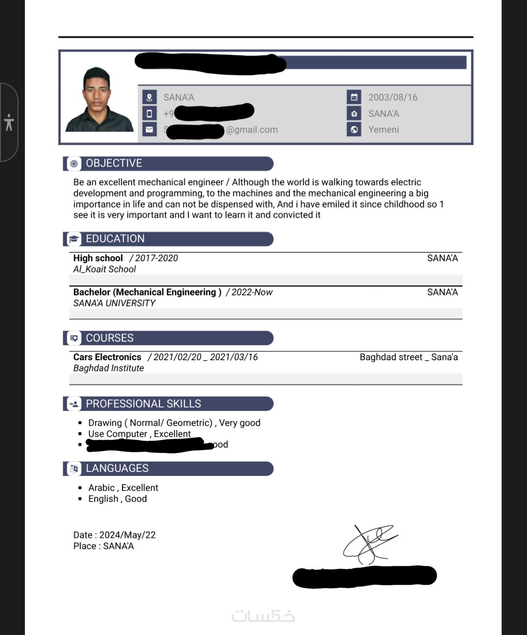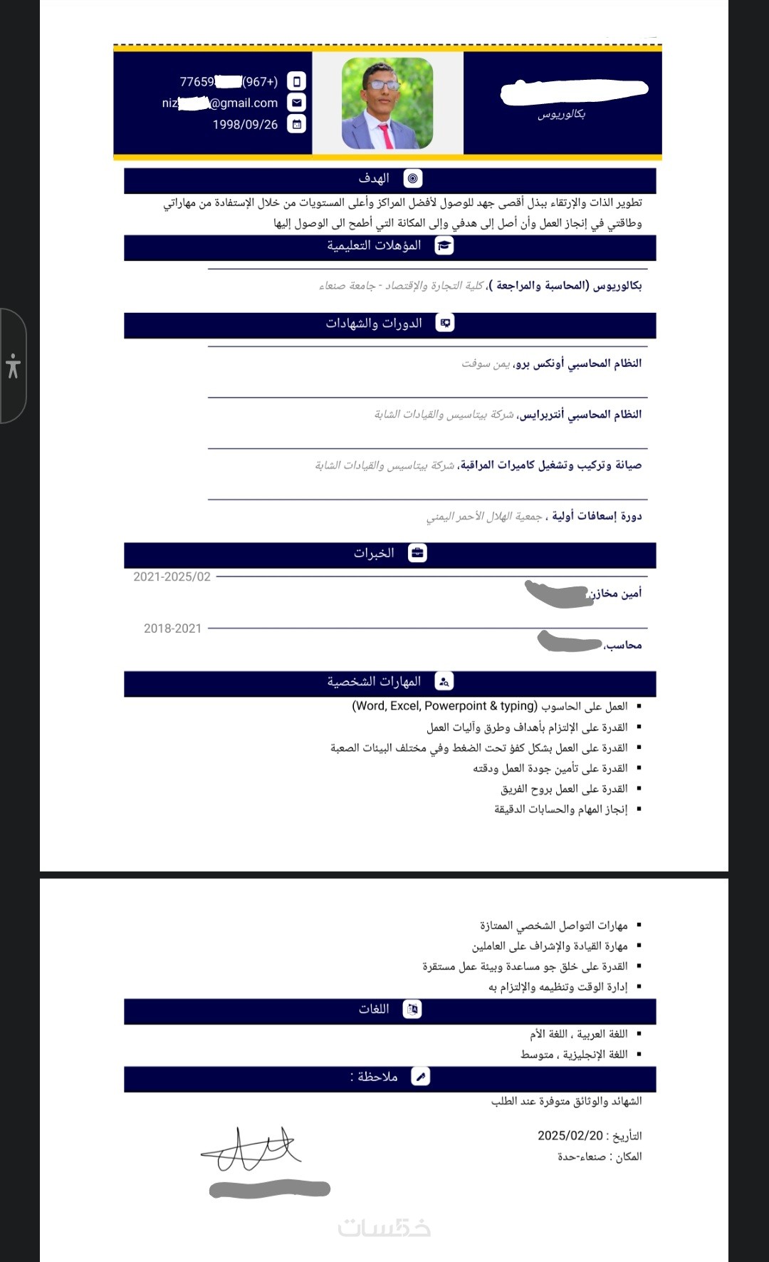 سيرة ذاتية حتى 5 صفحات باللغة العربية