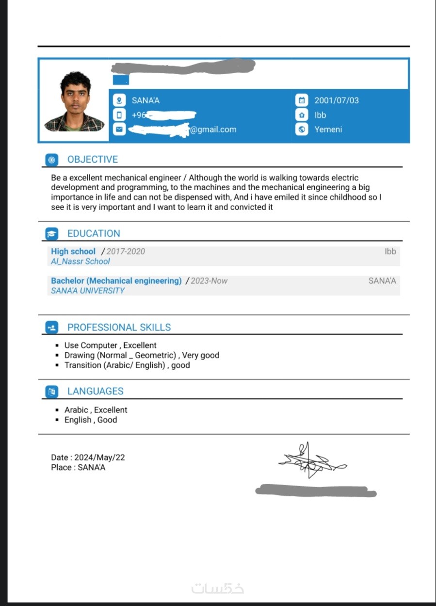 يمكنك أن تقدم المعلومات الأساسية فقط وسنقوم بإضافة باقي البنية العامة للسيرة الذاتية بما يرضي العميل