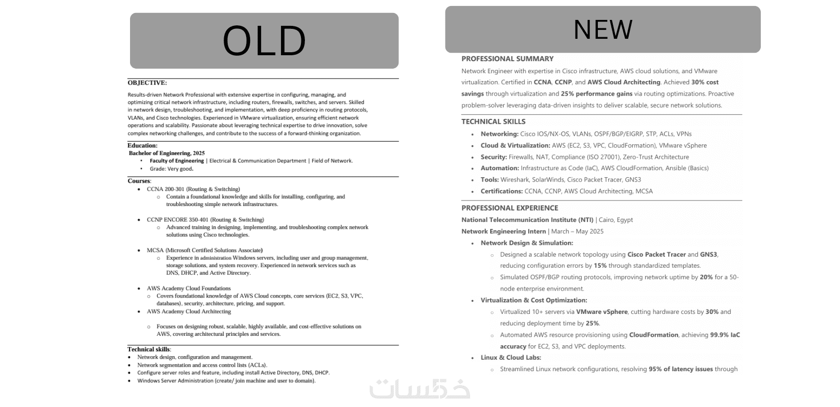 سواء كنت خريجاً جديداً، أو تبحث عن تغيير مسارك المهني، أو ترغب في الترقية داخل مجالك الحالي، ستحصل على وثائق مهنية تزيد من فرصك في اجتياز مرحلة الفرز الأولي والوصول إلى مرحلة المقابلة الشخصية.