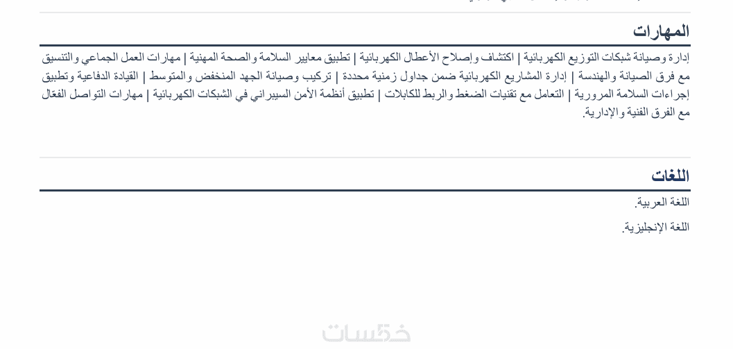 سيرة ذاتية بلغة ثانية (عربي أو إنجليزي)