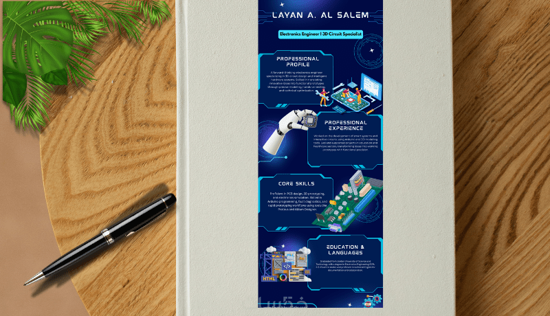 تصميم بصري جذاب يعكس طابعك المهني ومجالك الوظيفي، بأسلوب منسق وعصري.