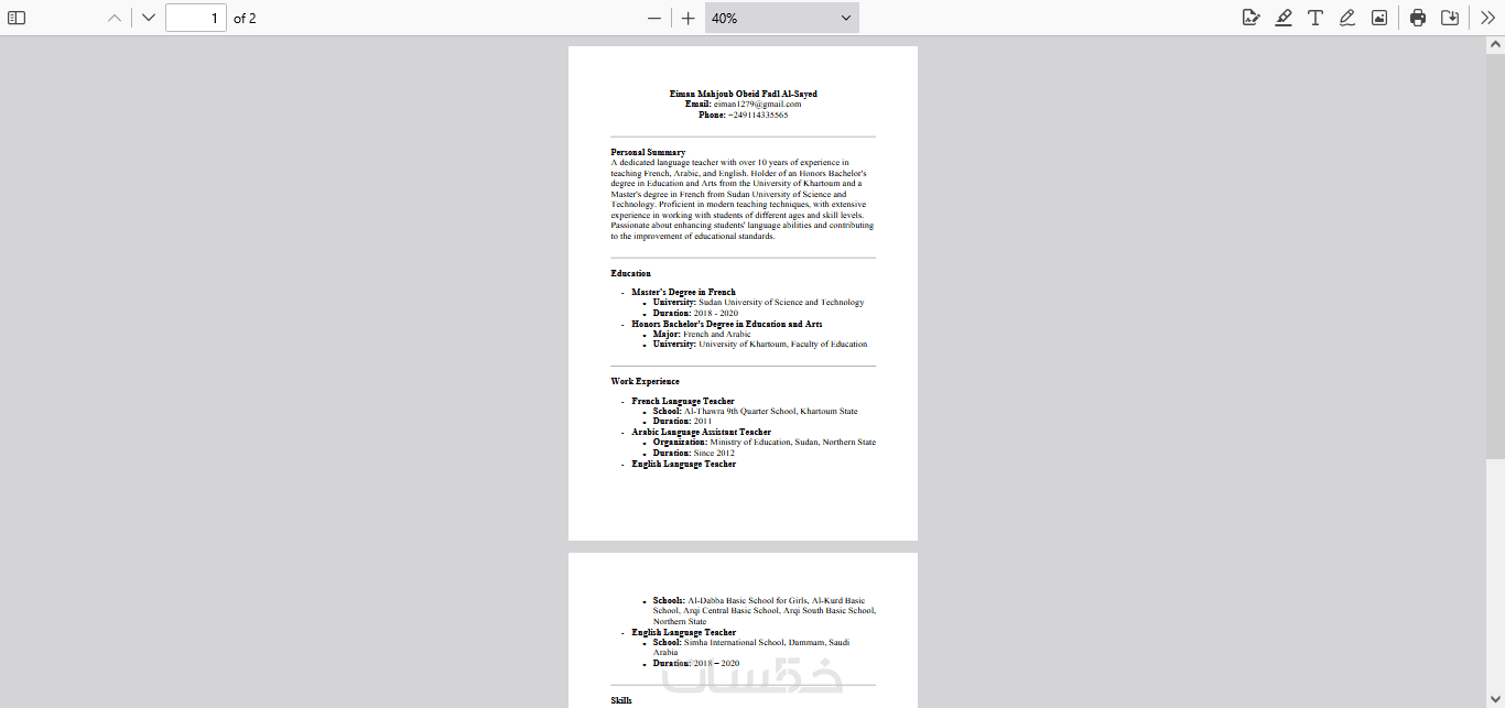 تنسيق احترافي وجذاب متوافق مع متطلبات ATS.