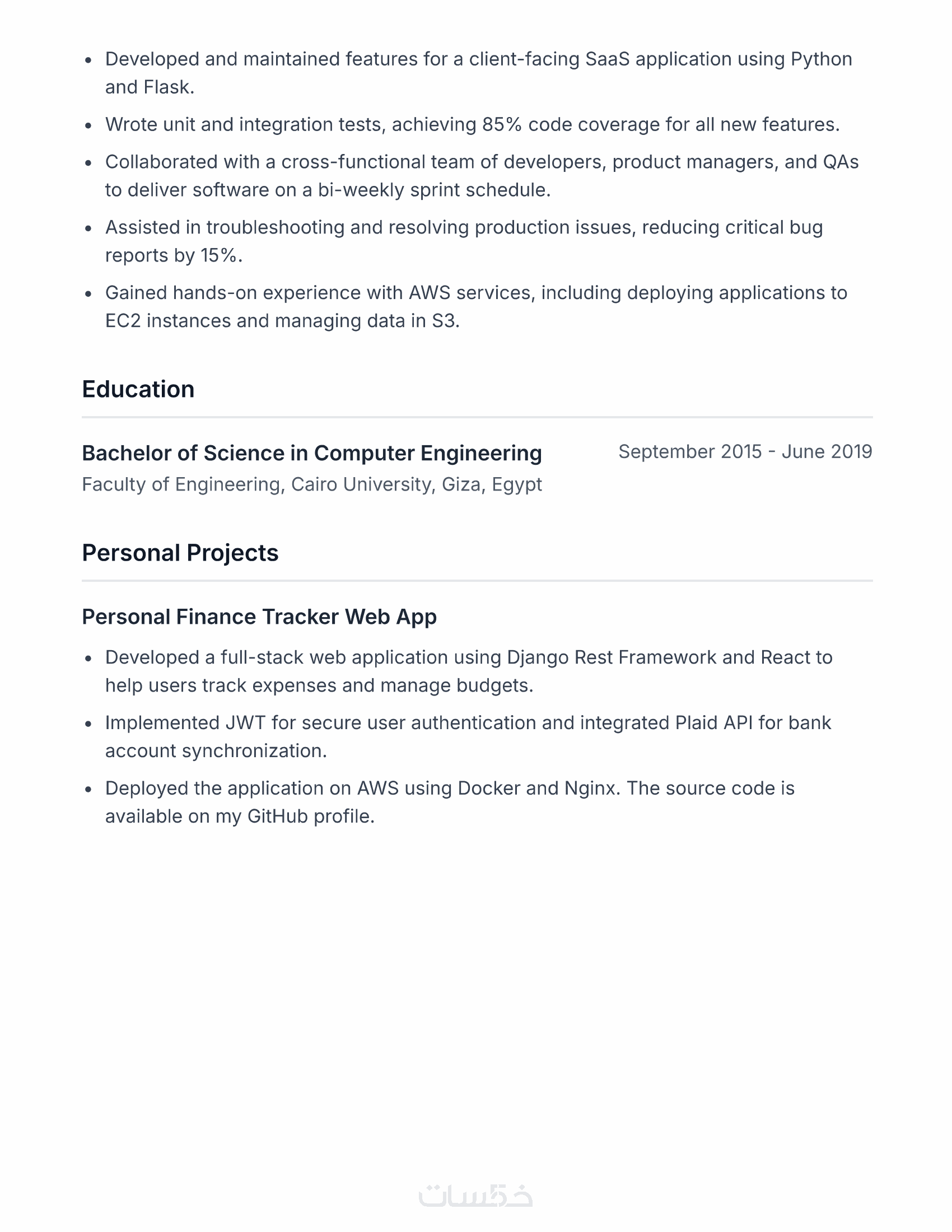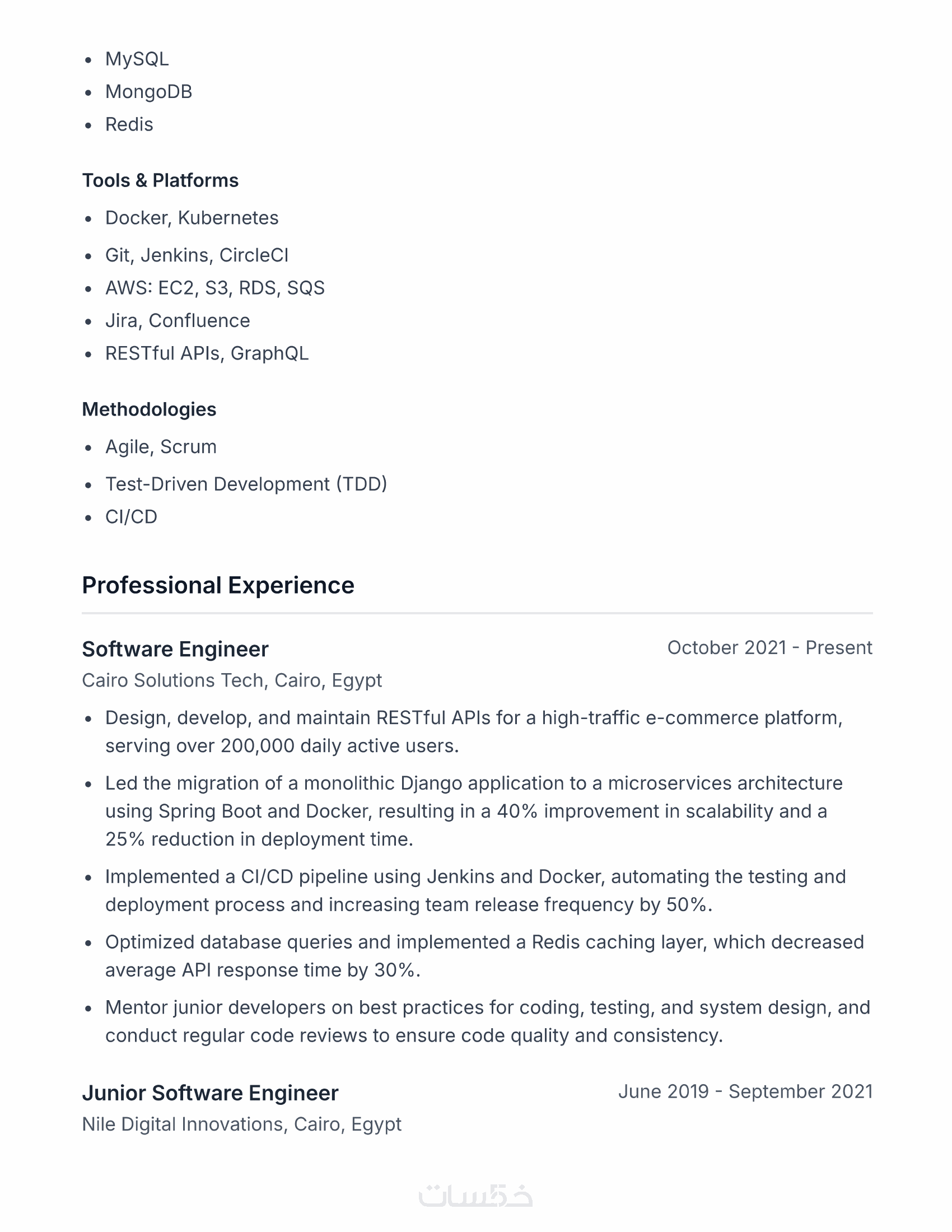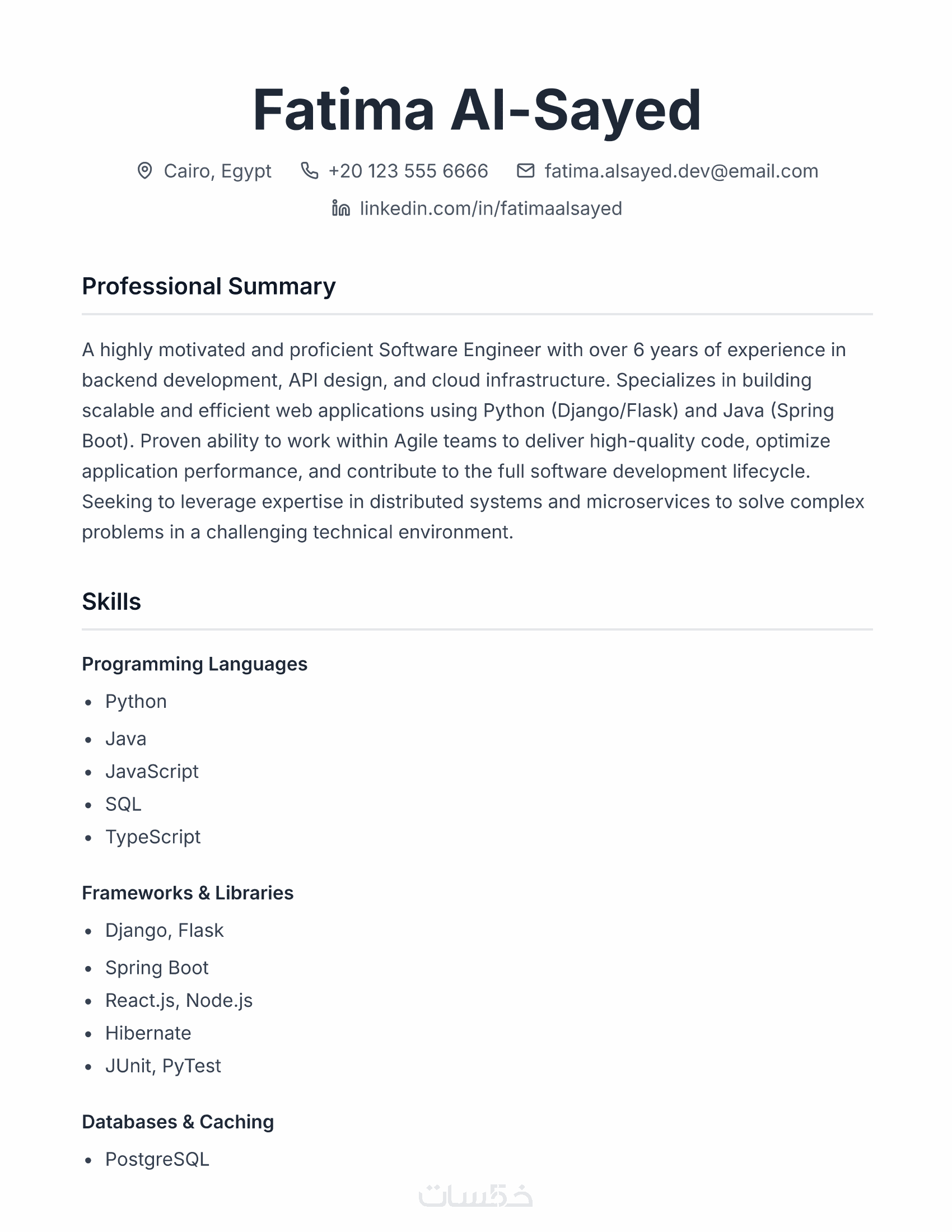 سأقوم بإنشاء CV متوافق مع أنظمة التتبع، منسق بشكل احترافي، يبرز مهاراتك وإنجازاتك، ويزيد فرص قبولك في المقابلات.