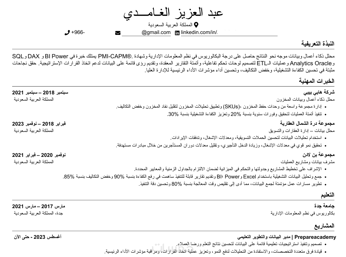 ويمكن تنفيذ السيرة الذاتية باللغة العربية أو الإنجليزية حسب المطلوب.