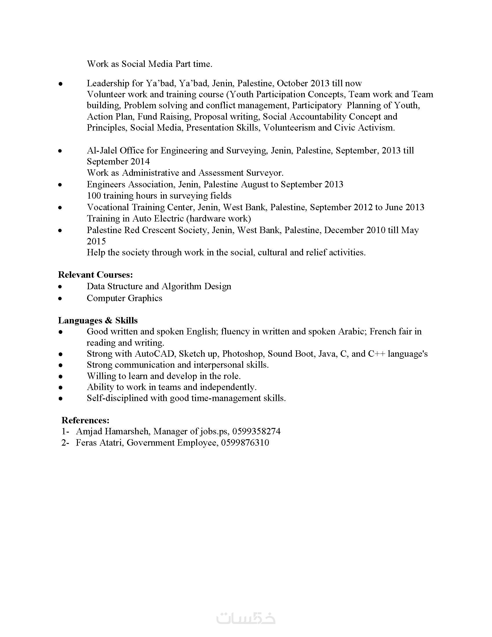 اهل تحتاج إلى سيرة ذاتية احترافية تناسب متطلبات سوق العمل الحديث؟ أنا هنا لأساعدك في تصميم سيرة ذاتية مميزة باللغة العربية والإنجليزية، مع مراعاة معايير نظام ATS (نظام تتبع المتقدمين) لضمان قبولك في الوظائف التي تقدم لها بشكل متقن وذلك للتناسب مع الوظيفةولجعل اصحاب العمل مهتمون بك وكتابتها باللغة التي تريد العربية او الانجليزية وباي صيغة ترتأي word و pdf
