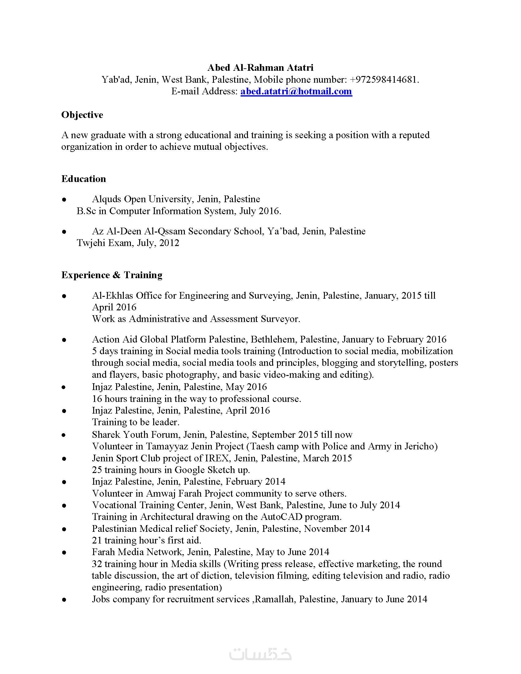 انا المهندس فراس عطاطري، متخصص في كتابة السيرة الذاتية وحاصل على دورات متخصصة في طرق السير الذاتية الاحترافية