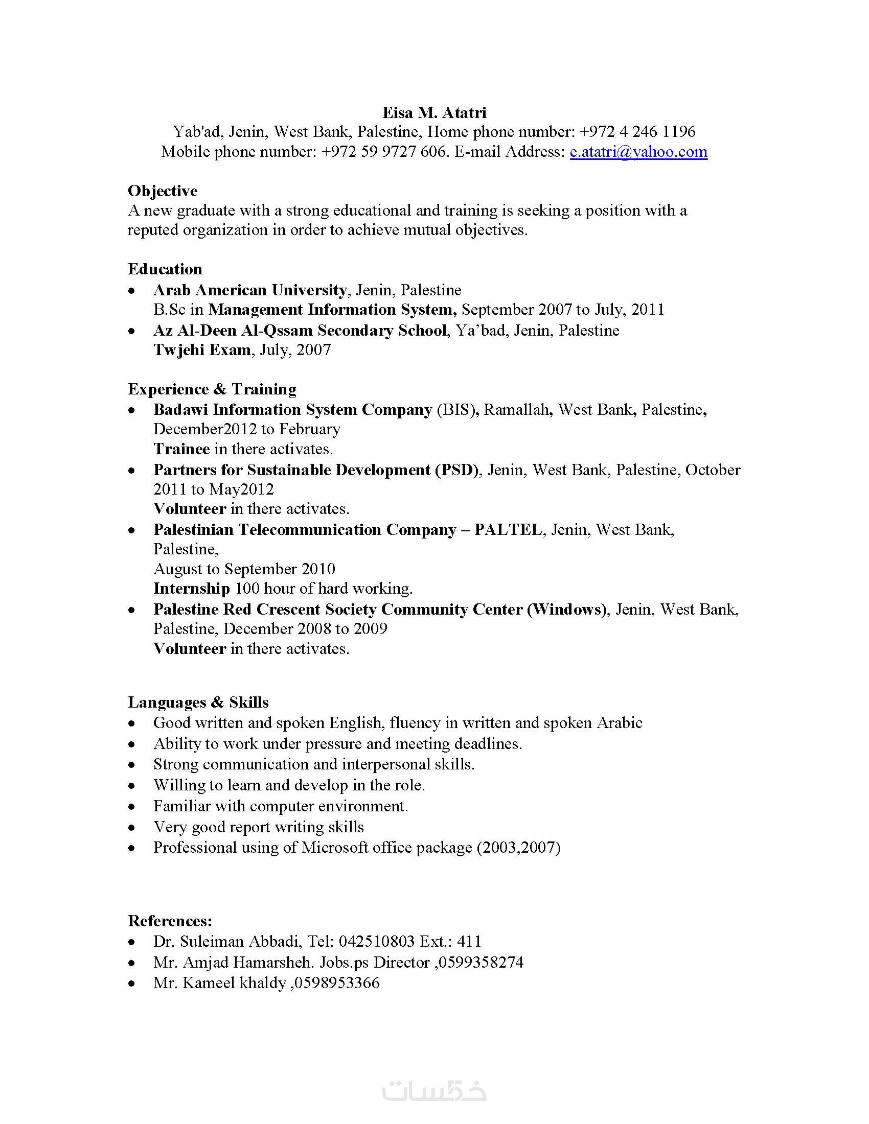 تحويل السيرة الذاتية من اللغة العربية الى الانجليزية او بالعكس