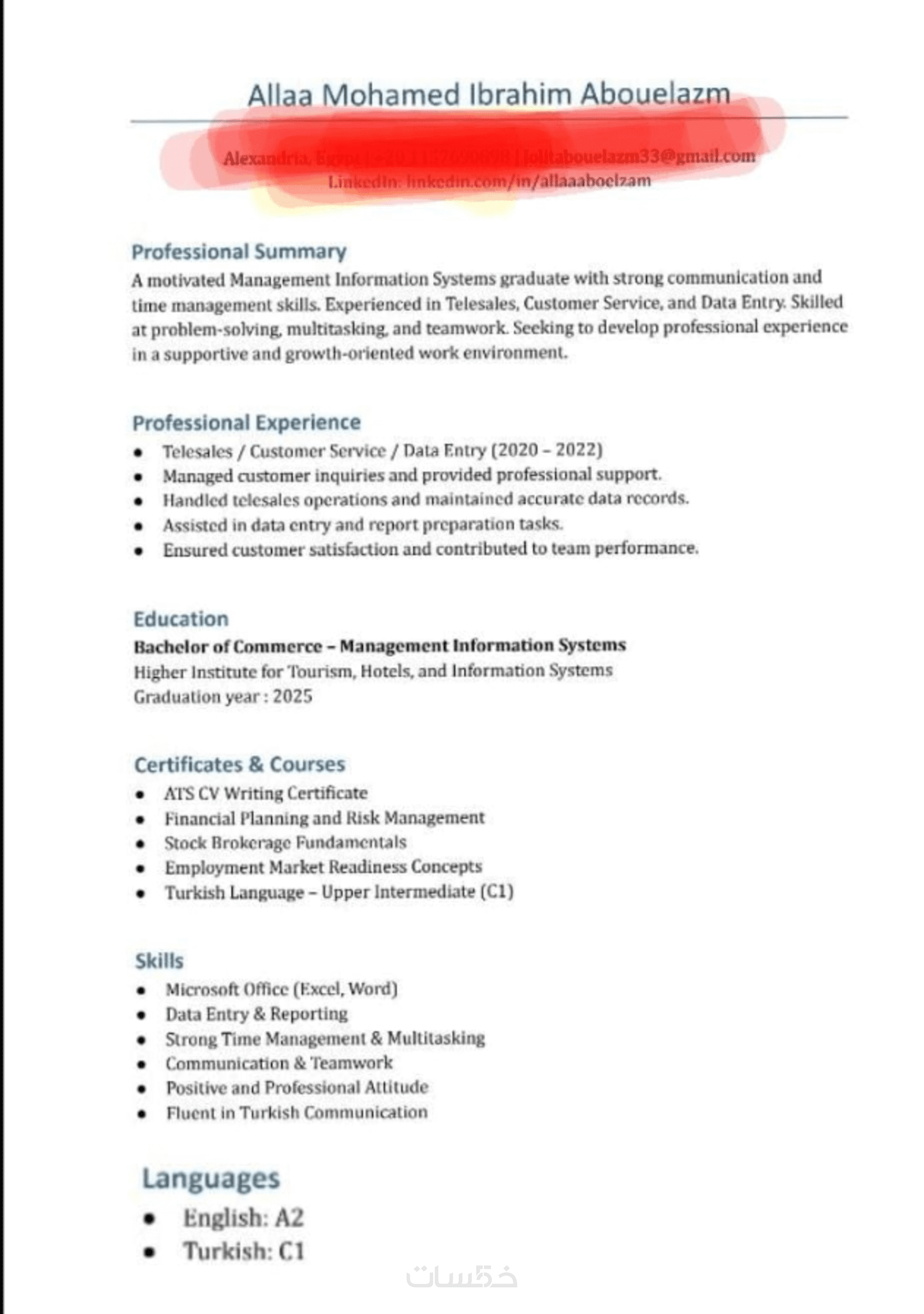 كتابة سيرة ذاتية لغة انجليزية او عربية صفحة واحدة فقط خلال ساعتين