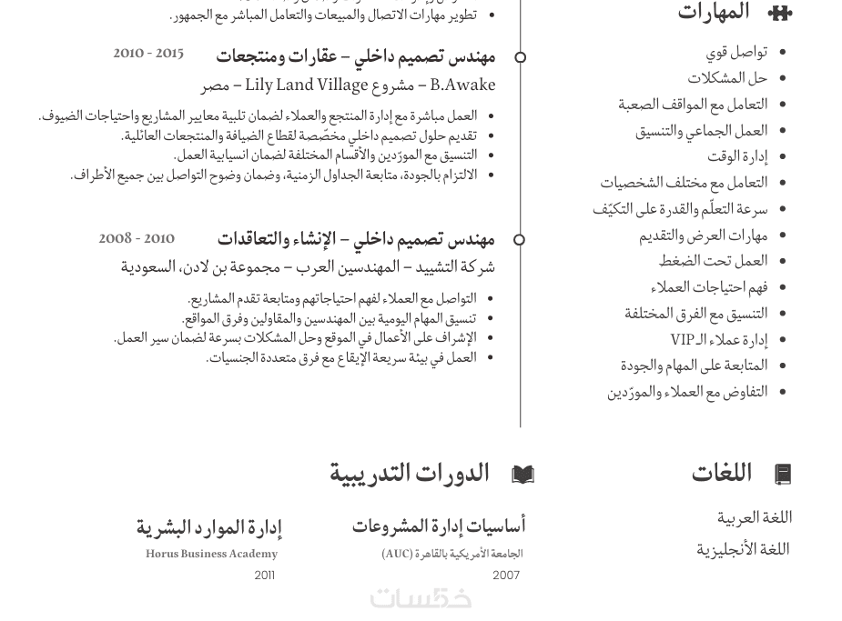 سيرة ذاتية بالعربية من صفحتين أو ثلاث