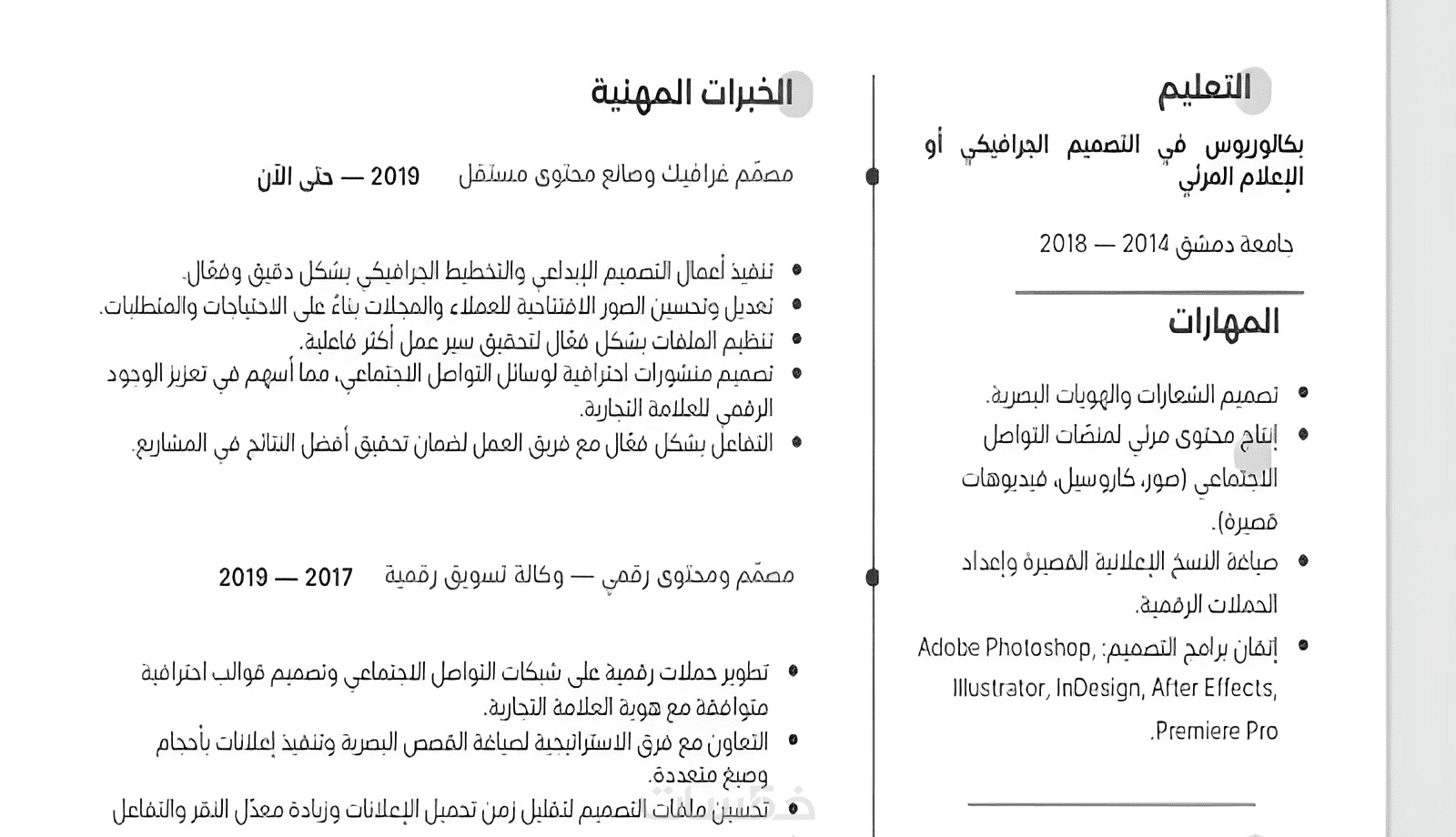 سيرة ذاتية من صفحة واحدة باللغة العربية أو اللغة الإنكليزية مقابل خدمة واحدة