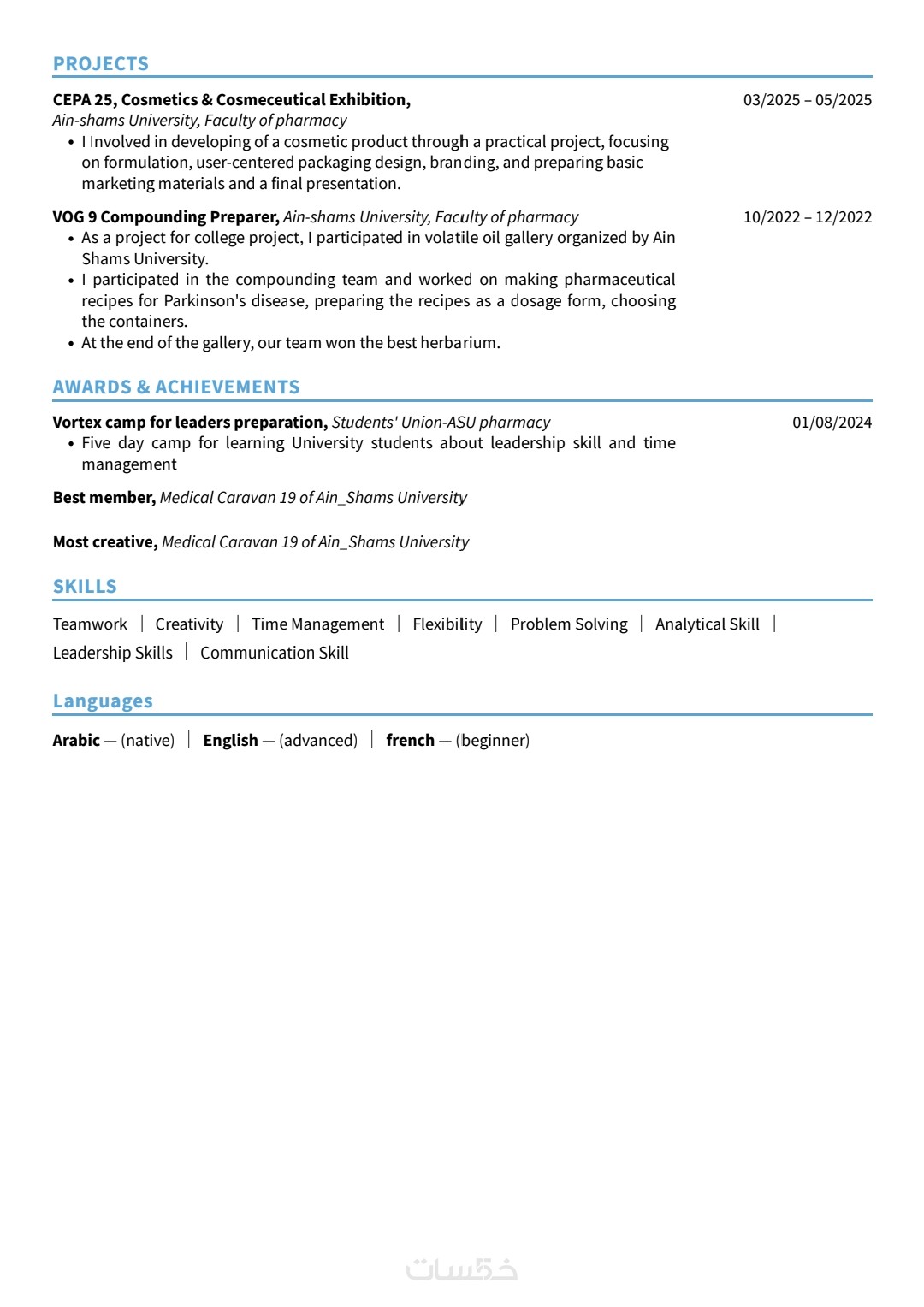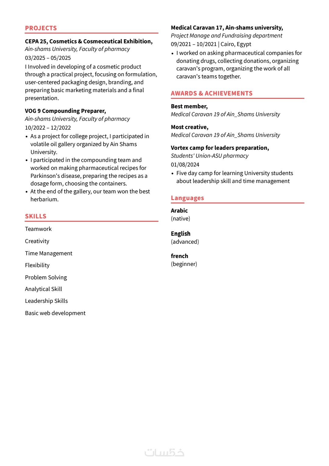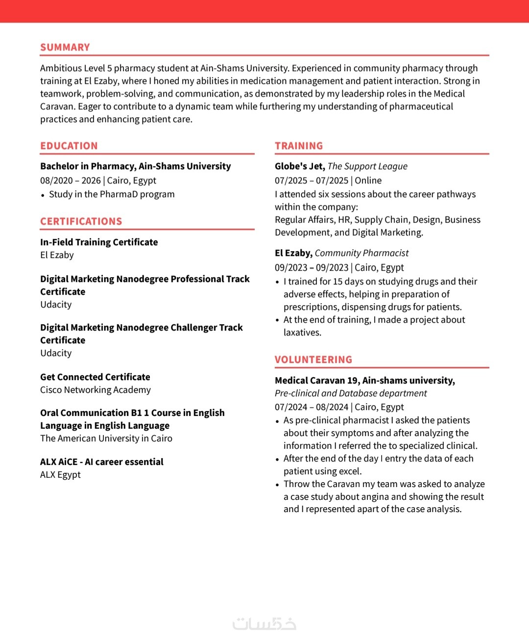 أقدّم لك خدمة احترافية لكتابة وتطوير السيرة الذاتية.