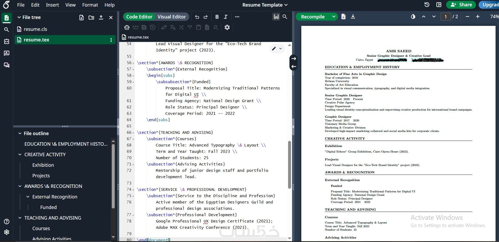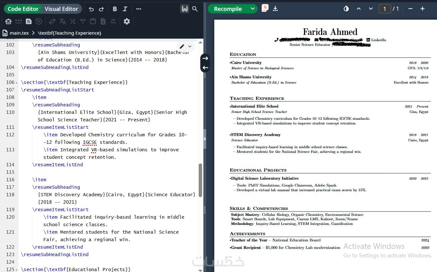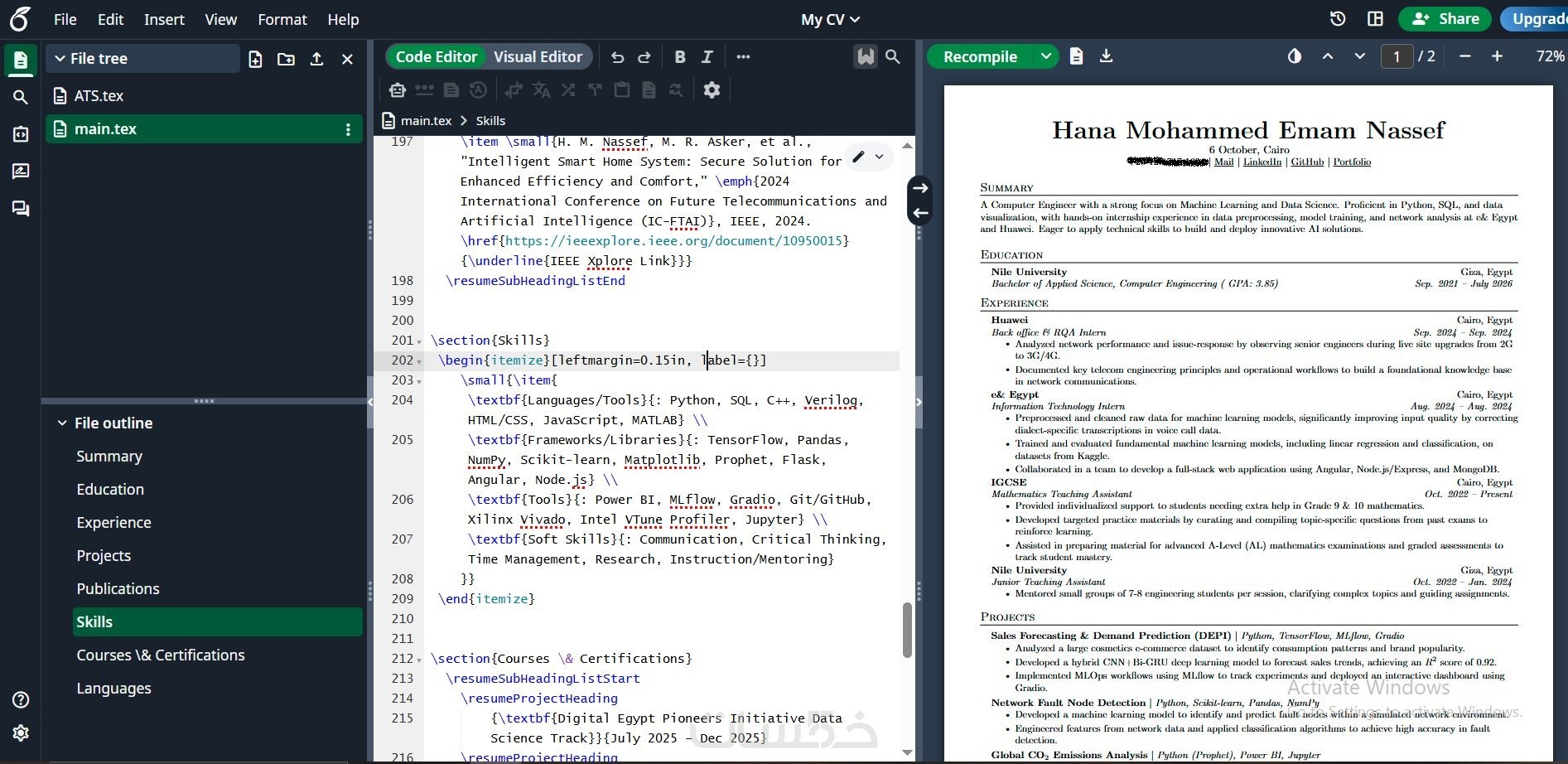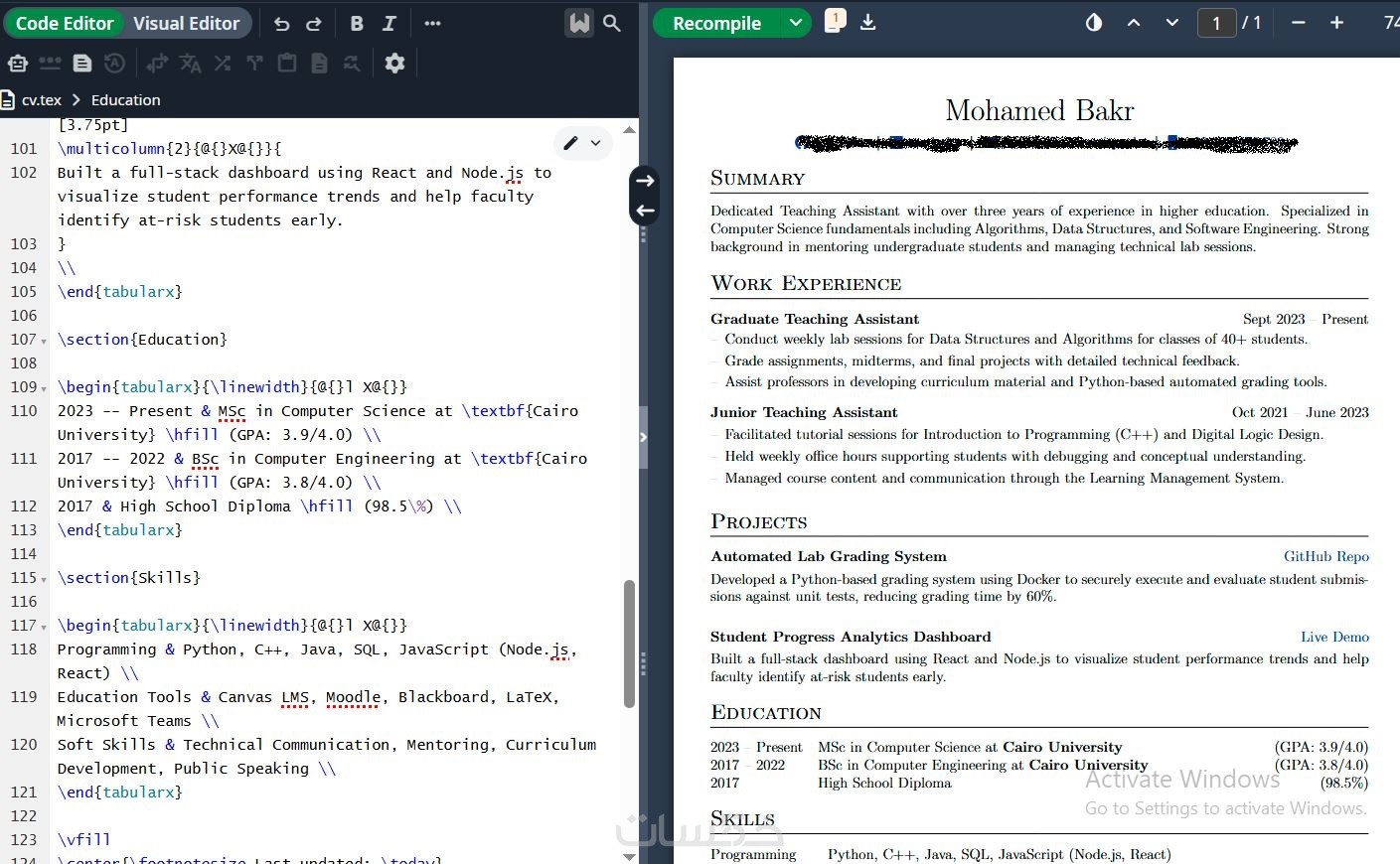 أقدّم خدمة إعداد وتنسيق سيرة ذاتية احترافية باستخدام Overleaf (LaTeX)، مع التركيز على بنية واضحة وتنسيق نظيف يساعد على توافق السيرة الذاتية مع أنظمة تتبع المتقدمين (ATS).