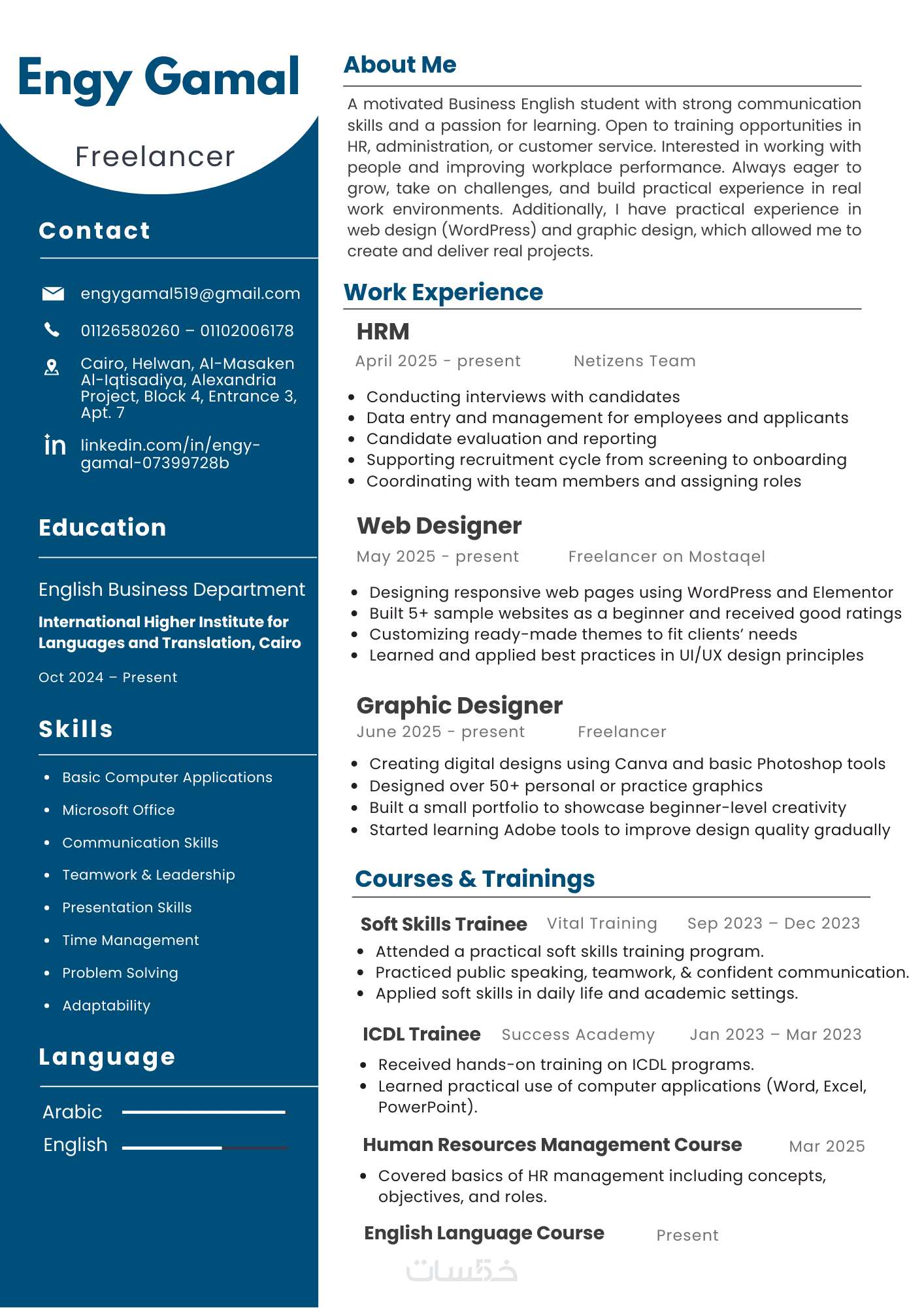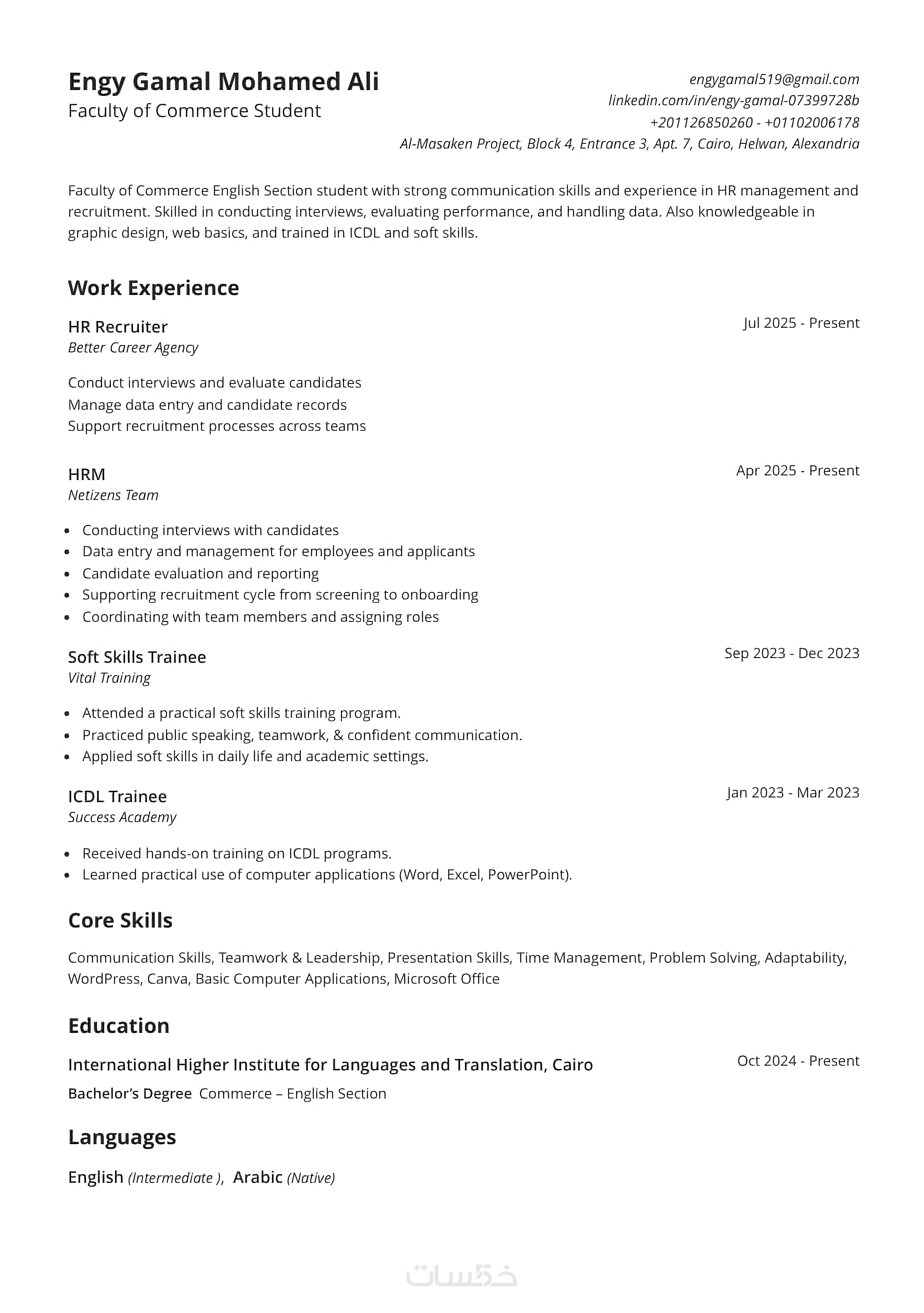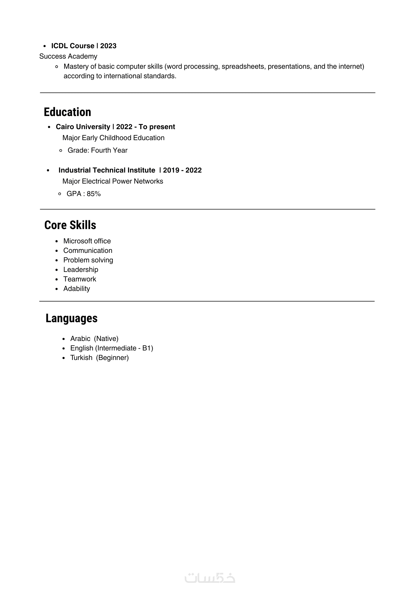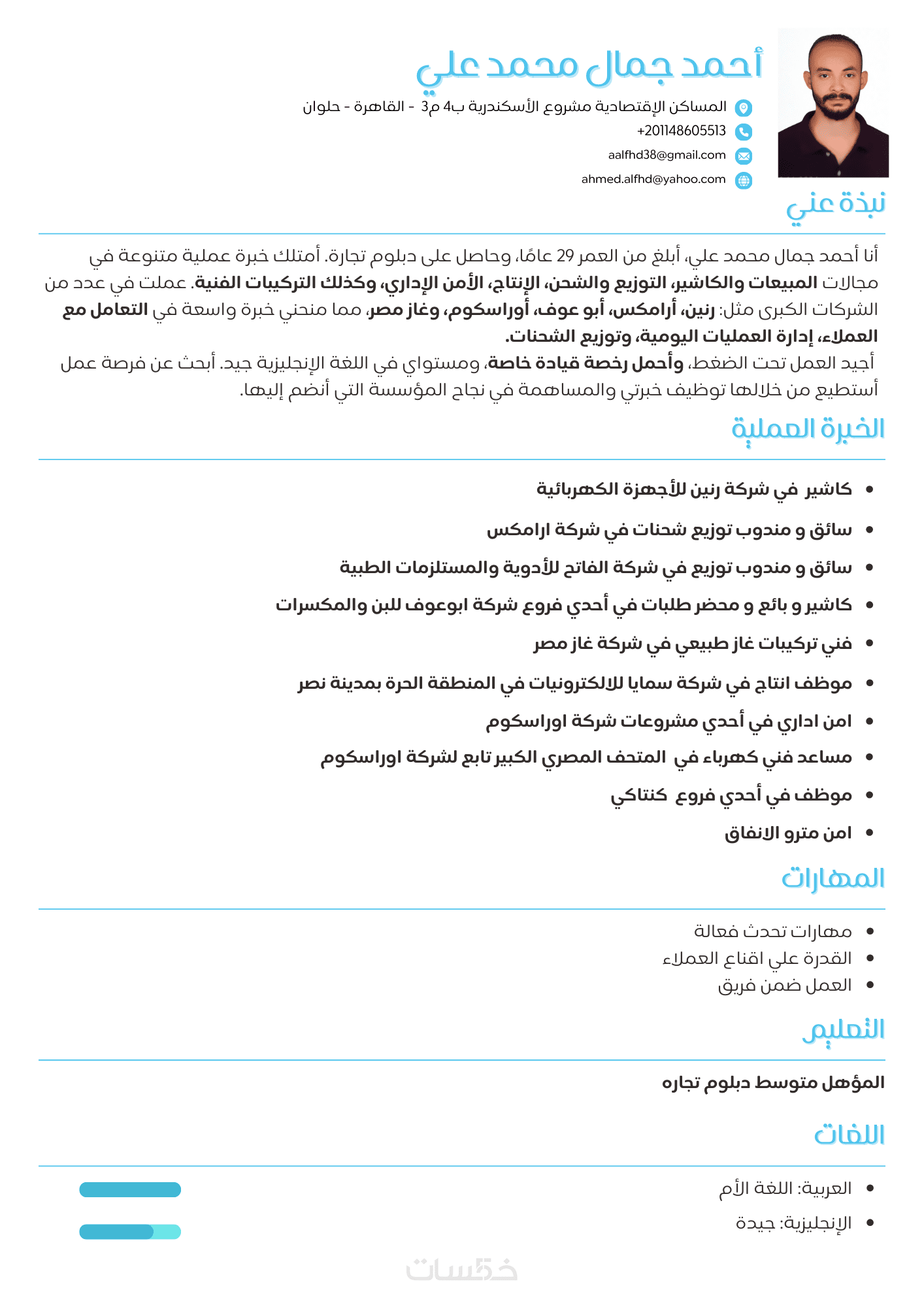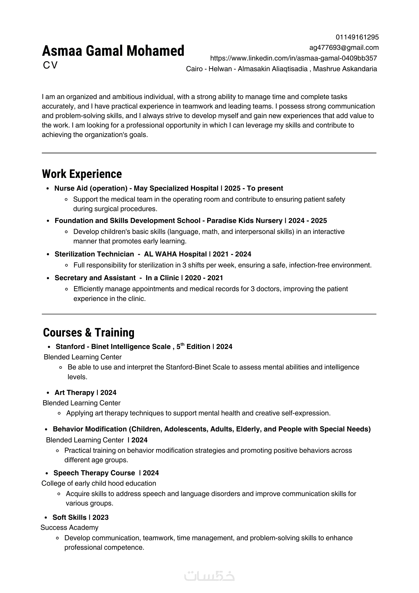 أكتب سيرة ذاتية واحدة بصيغة احترافية جاهزة للارسال والتقديم.