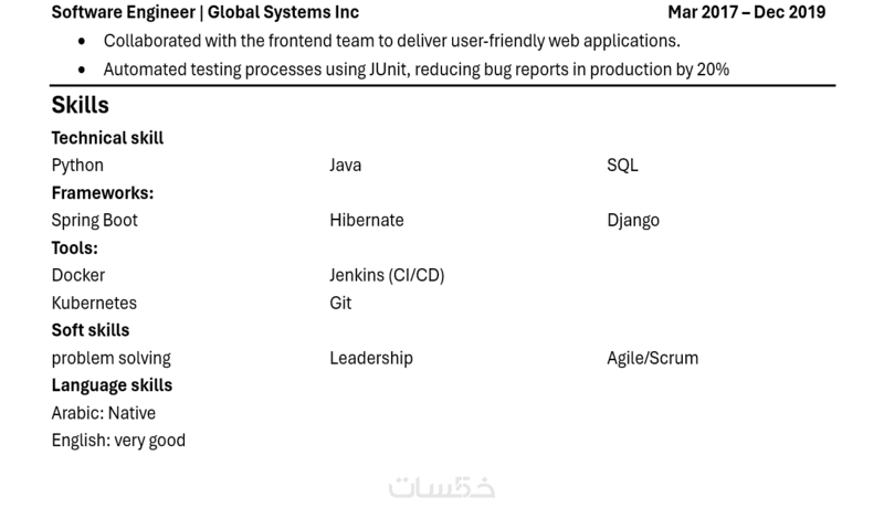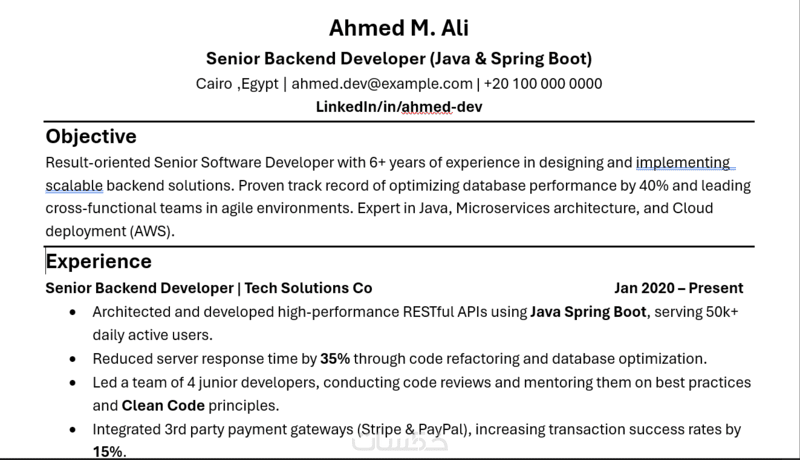 لغة الأرقام والإنجازات: أقوم بصياغة خبراتك بأسلوب (Action-Result)، محولاً المهام الروتينية إلى إنجازات رقمية ملموسة تبرز قيمتك.