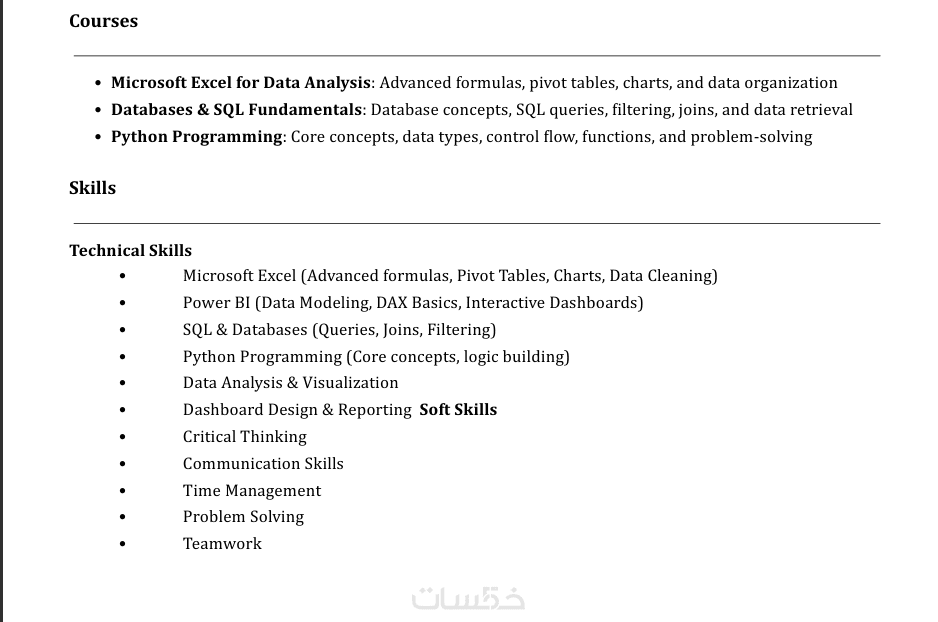 صياغه متوافقه مع انظمه الفرز الالكتروني لضمان وصول سيرتك الي مسؤول التوظيف