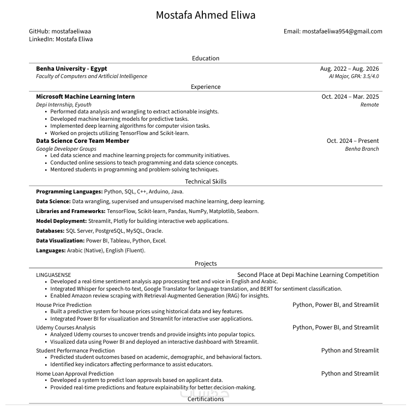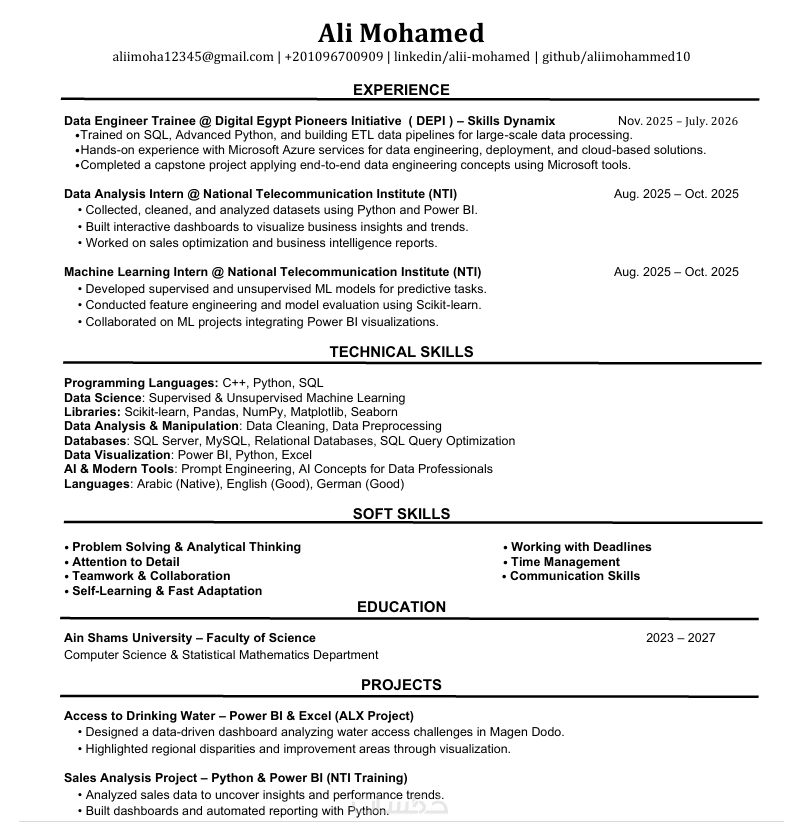 تنسيق احترافي متوافق مع أنظمة ATS (بدون جداول معقدة أو تصاميم تعيق القراءة الآلية)