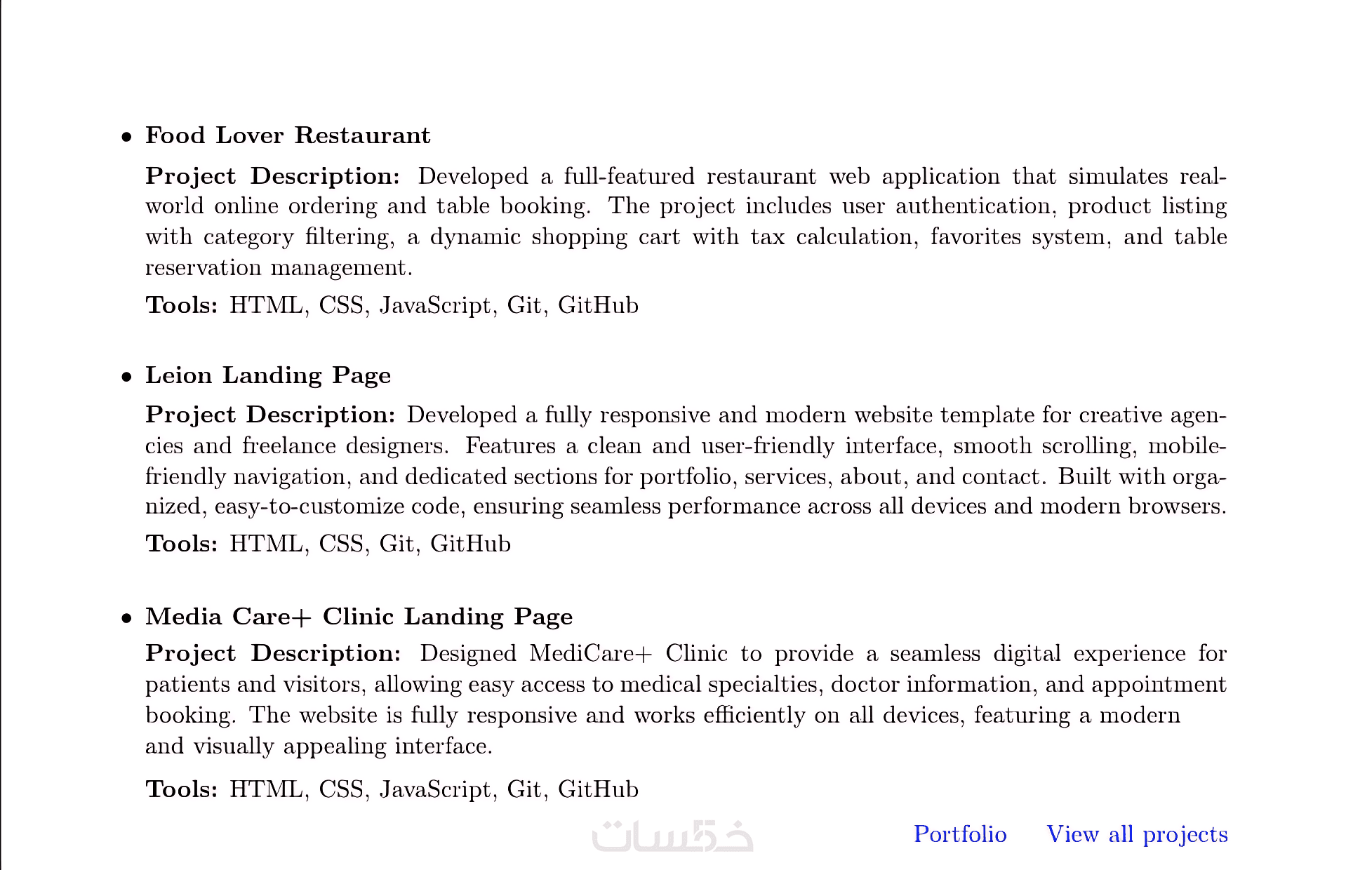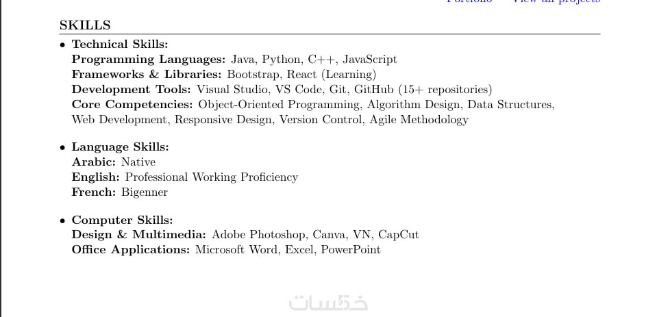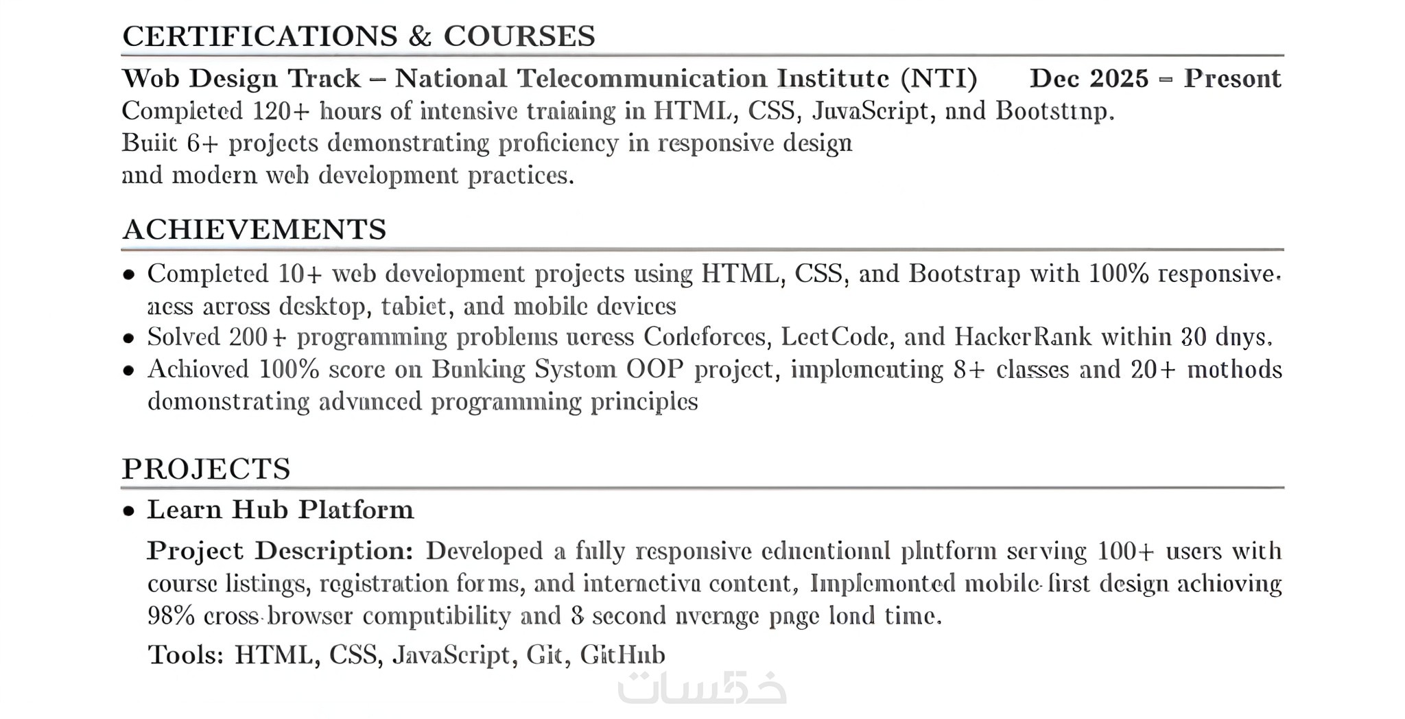 تصميم السيرة بطريقة مرتبة بالترتيب الصحيح للسكاشن.