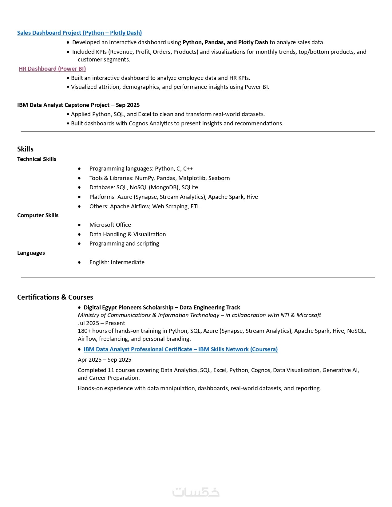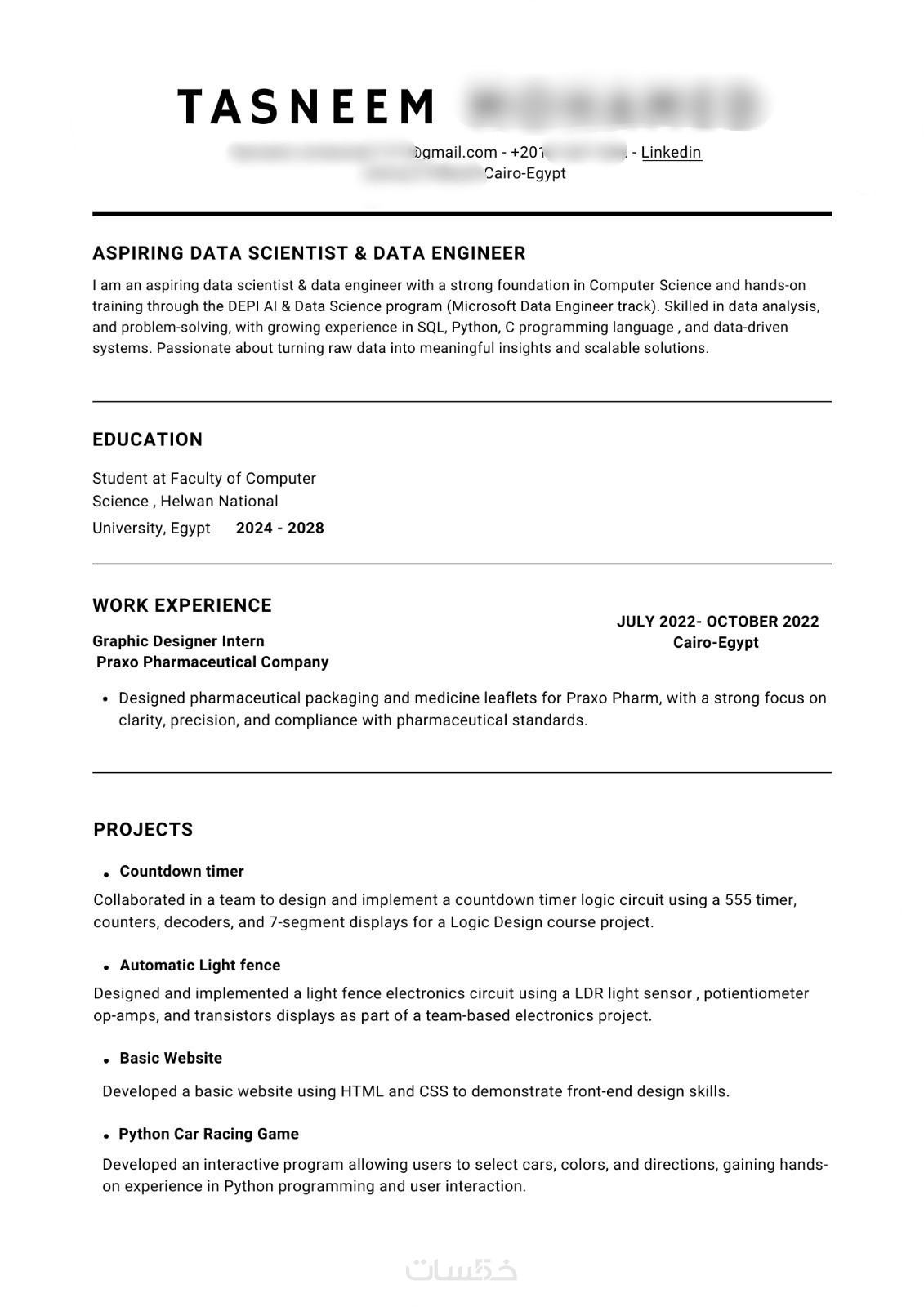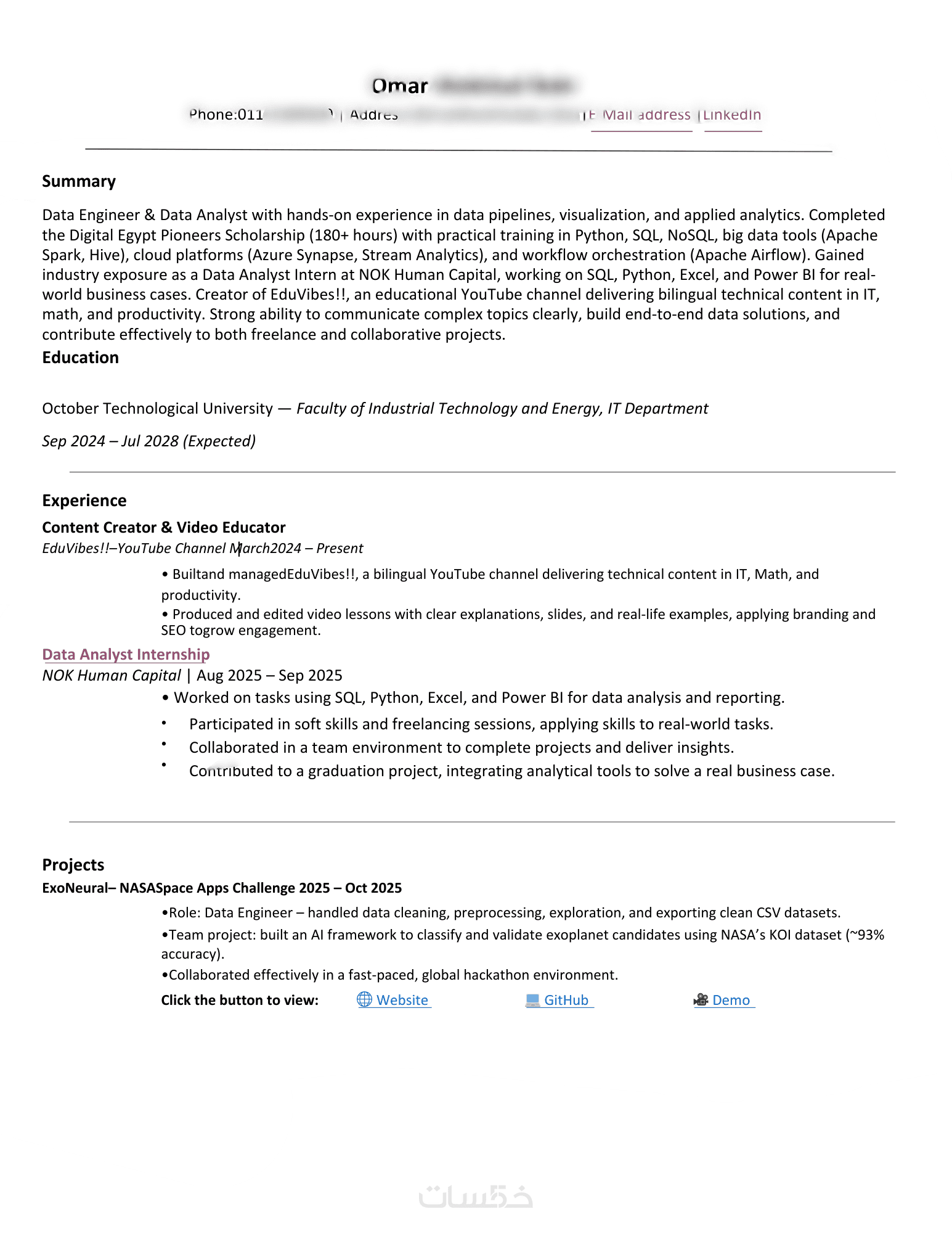 – الخدمة المطلوبة: كتابة CV احترافي متوافق مع ATS + تحسين بروفايل لينكدان