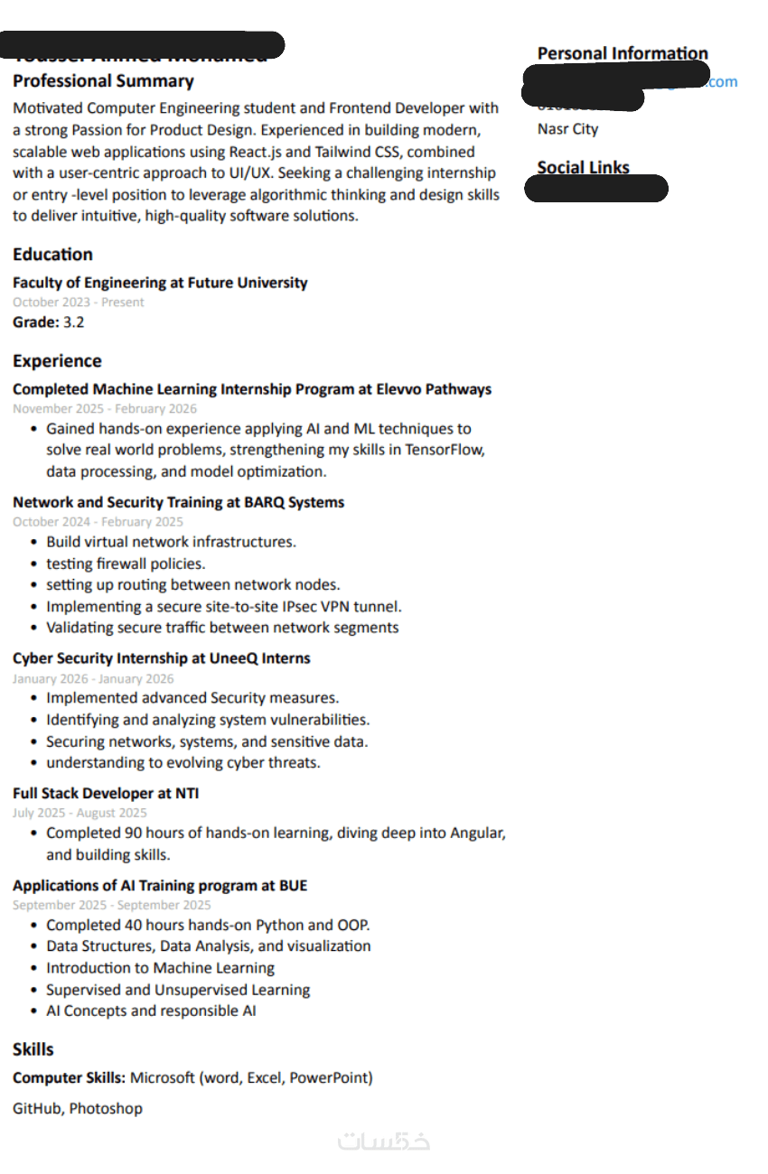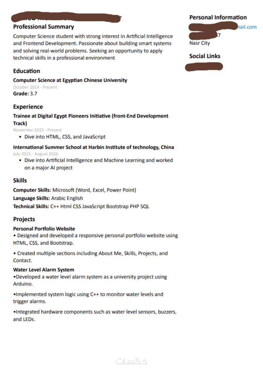 هدفي من هذه الخدمة هو مساعدتك في تقديم نفسك بصورة احترافية تزيد من فرصك في الحصول على مقابلات العمل.