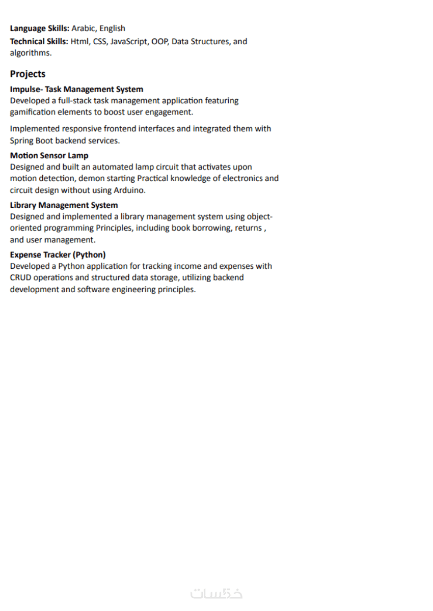 سأقوم بكتابة cv لك باللغة العربية.