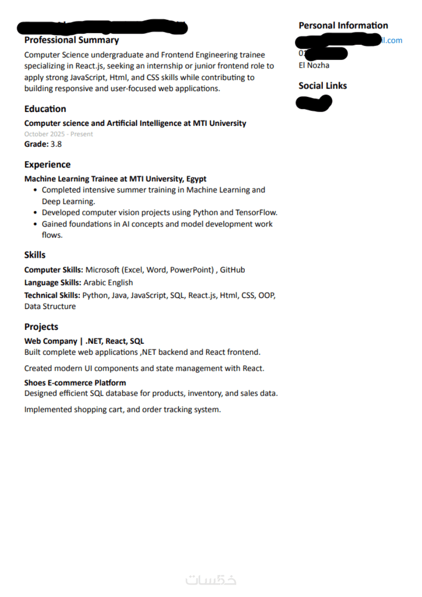 السيرة الذاتية هي أول انطباع يكوّنه صاحب العمل عنك، وغالبًا ما يتم تقييمها خلال ثوانٍ قليلة فقط. لذلك فإن امتلاك سيرة ذاتية احترافية ومنظمة يلعب دورًا أساسيًا في زيادة فرصك للحصول على مقابلات العمل.