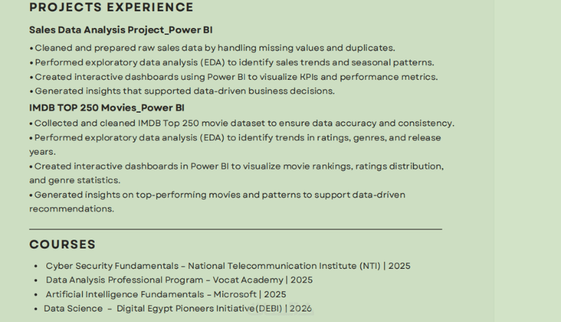 أقوم بمراجعة السيرة الذاتية وتحسين تنسيقها وإعادة ترتيب المعلومات بشكل احترافي، مع تحسين صياغة المحتوى ليكون واضحًا ومناسبًا لسوق العمل. كما أحرص على تصميم بسيط ومنظم يبرز أهم المهارات والخبرات بشكل سهل القراءة.