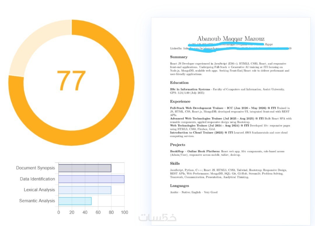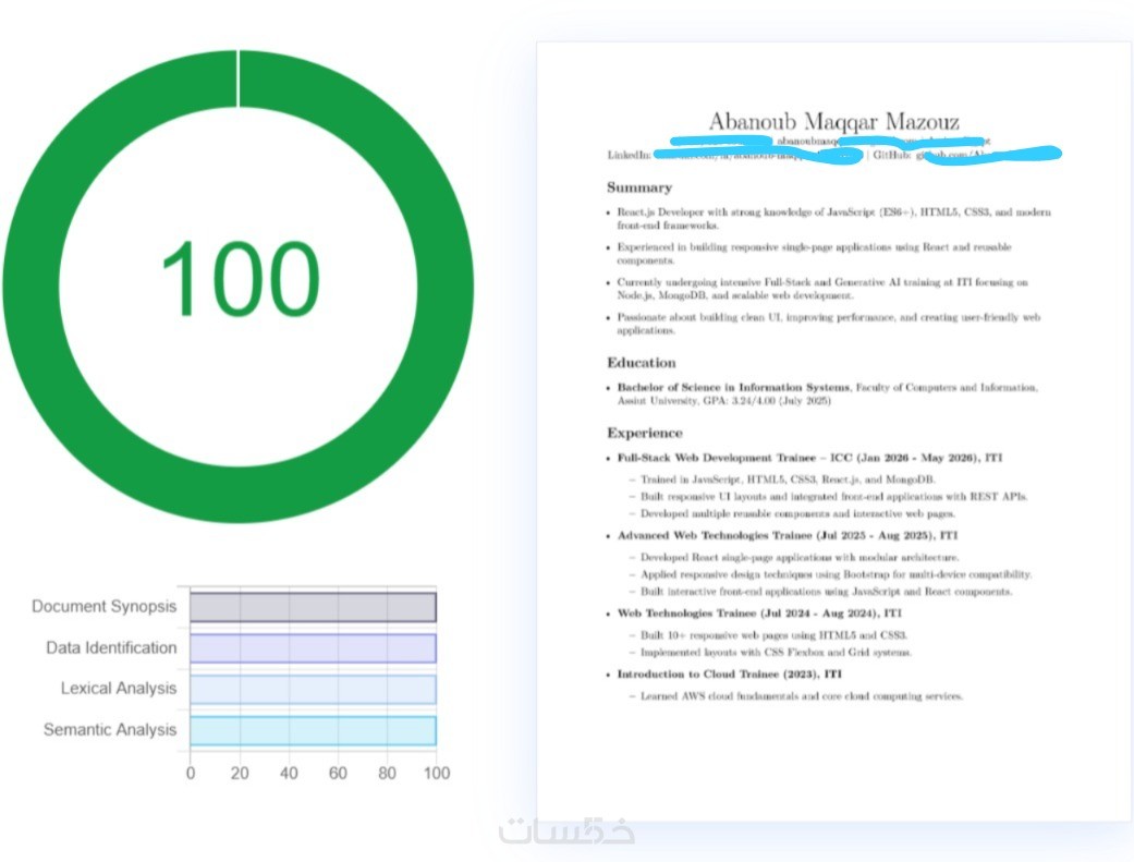 أنا أقدم لك خدمة تصميم سيرة ذاتية احترافية ومتوافقة مع أنظمة ATS تضمن ظهورك واجتياز الفلاتر الأولى بنجاح.