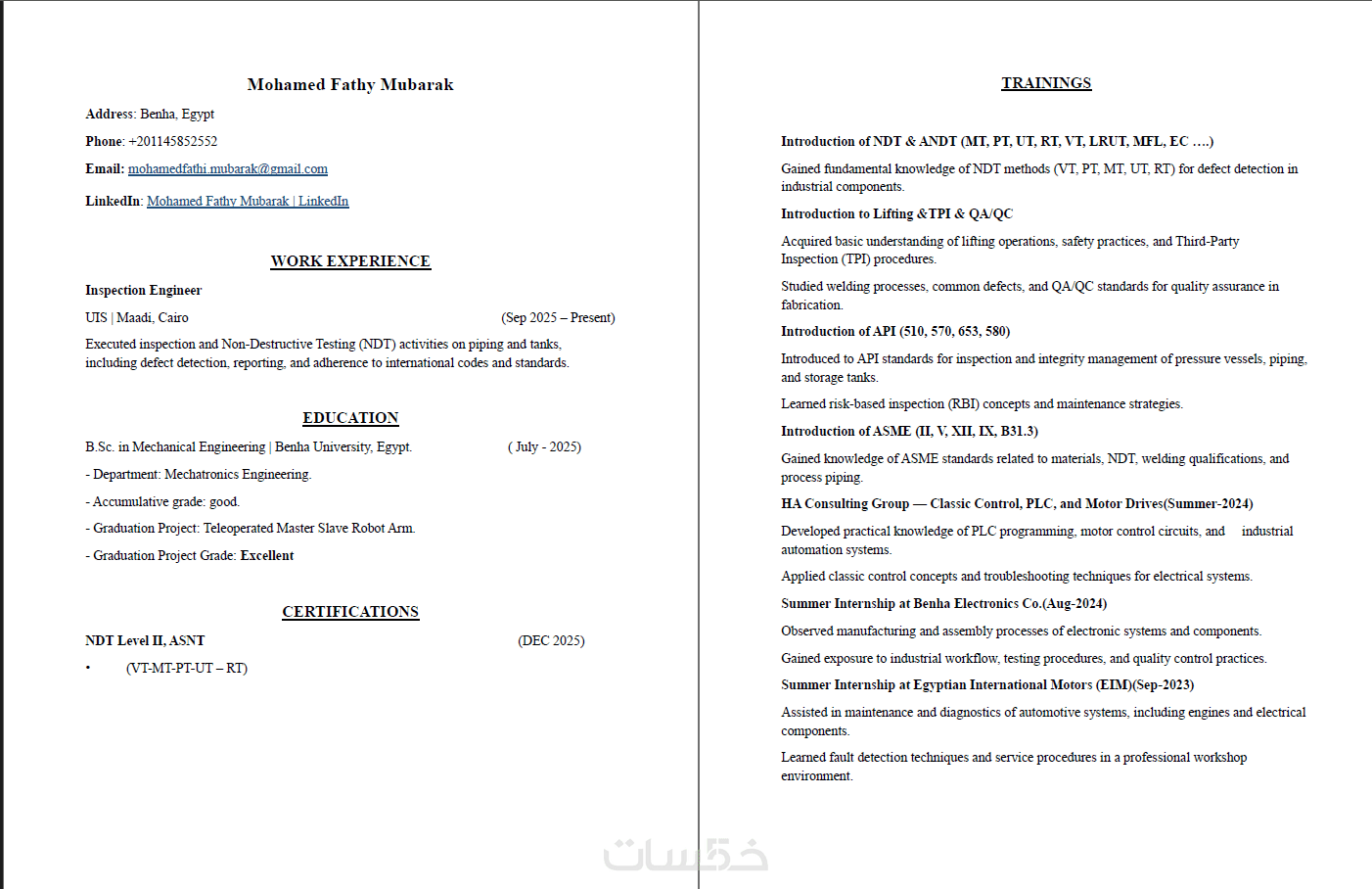 الأنظمة الآلية ترفض أكثر من 70% من السير الذاتية لمجرد أن التنسيق معقد أو الكلمات المفتاحية غير مطابقة، حتى لو كنت الشخص الأنسب للوظيفة! هنا يأتي دوري؛ بفضل عقليتي التحليلية وفهمي لكيفية عمل الخوارزميات وقراءة الأنظمة للبيانات، سأقوم بصياغة وتصميم سيرتك الذاتية بلغة تفهمها الآلة، ويقتنع بها مدير التوظيف البشري.