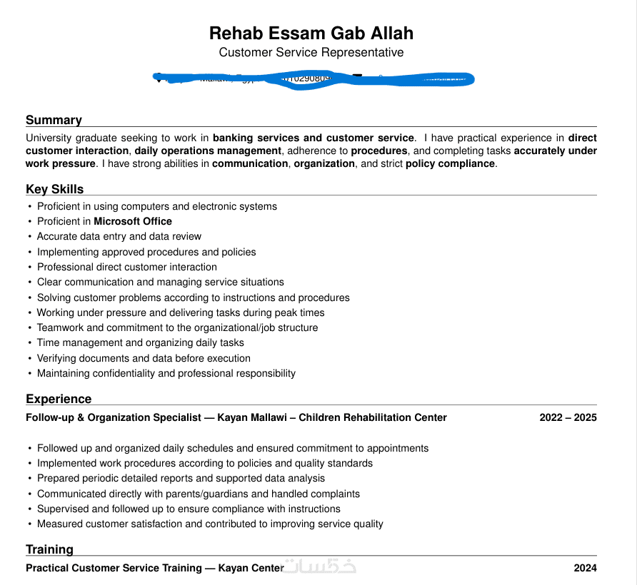 تنسيق احترافي واضح ومتوافق مع أنظمة ATS